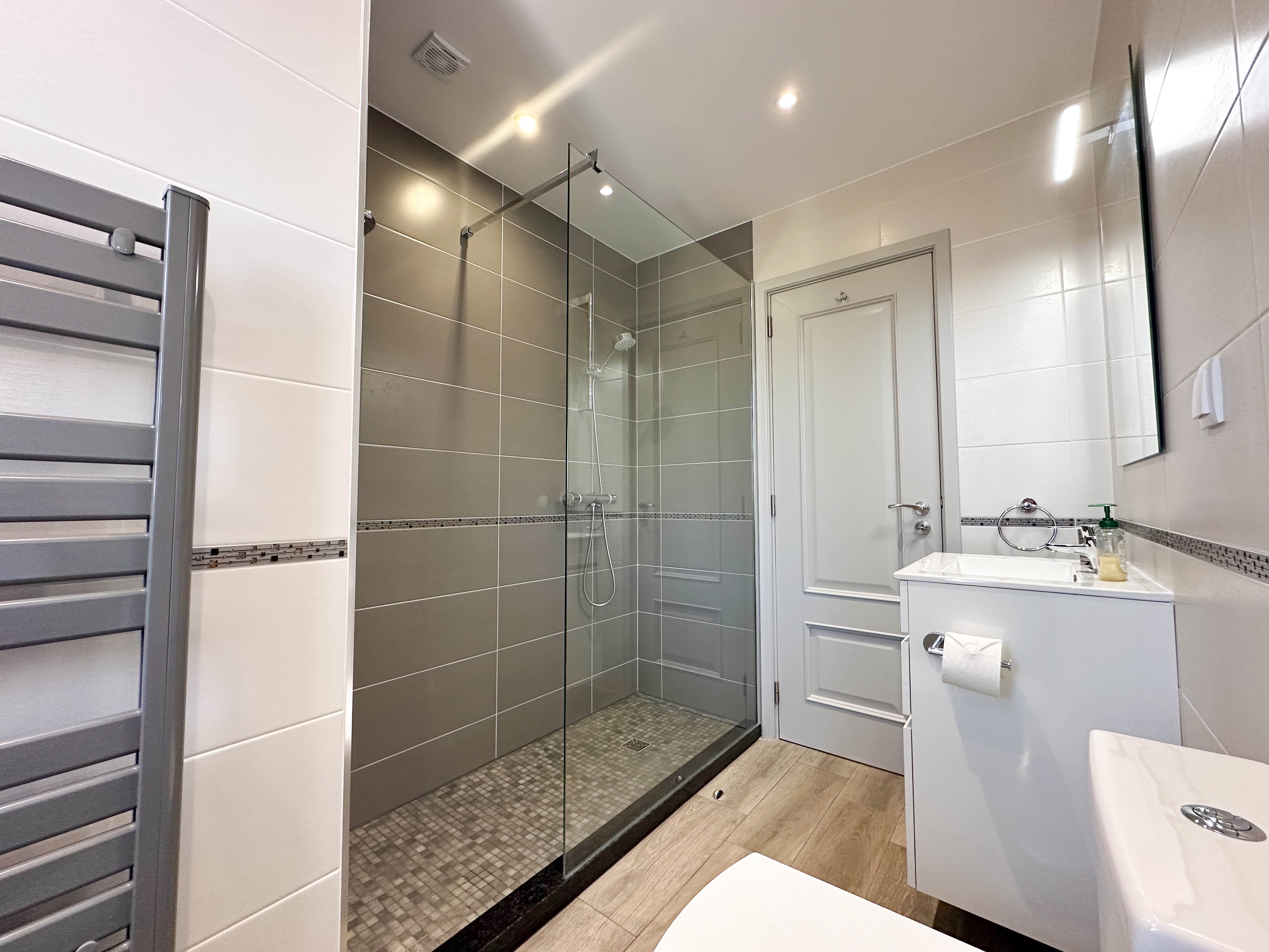 On the 1st floor, you will find the 3 bedrooms, all with double beds and air conditioning. Two of the bedrooms have built-in closets, and the third has a simple closet. The two bathrooms with shower have a very modern decor. There is also a large balcony and access to the terrace where you have a magnificent view of the surrounding area and the sea.
