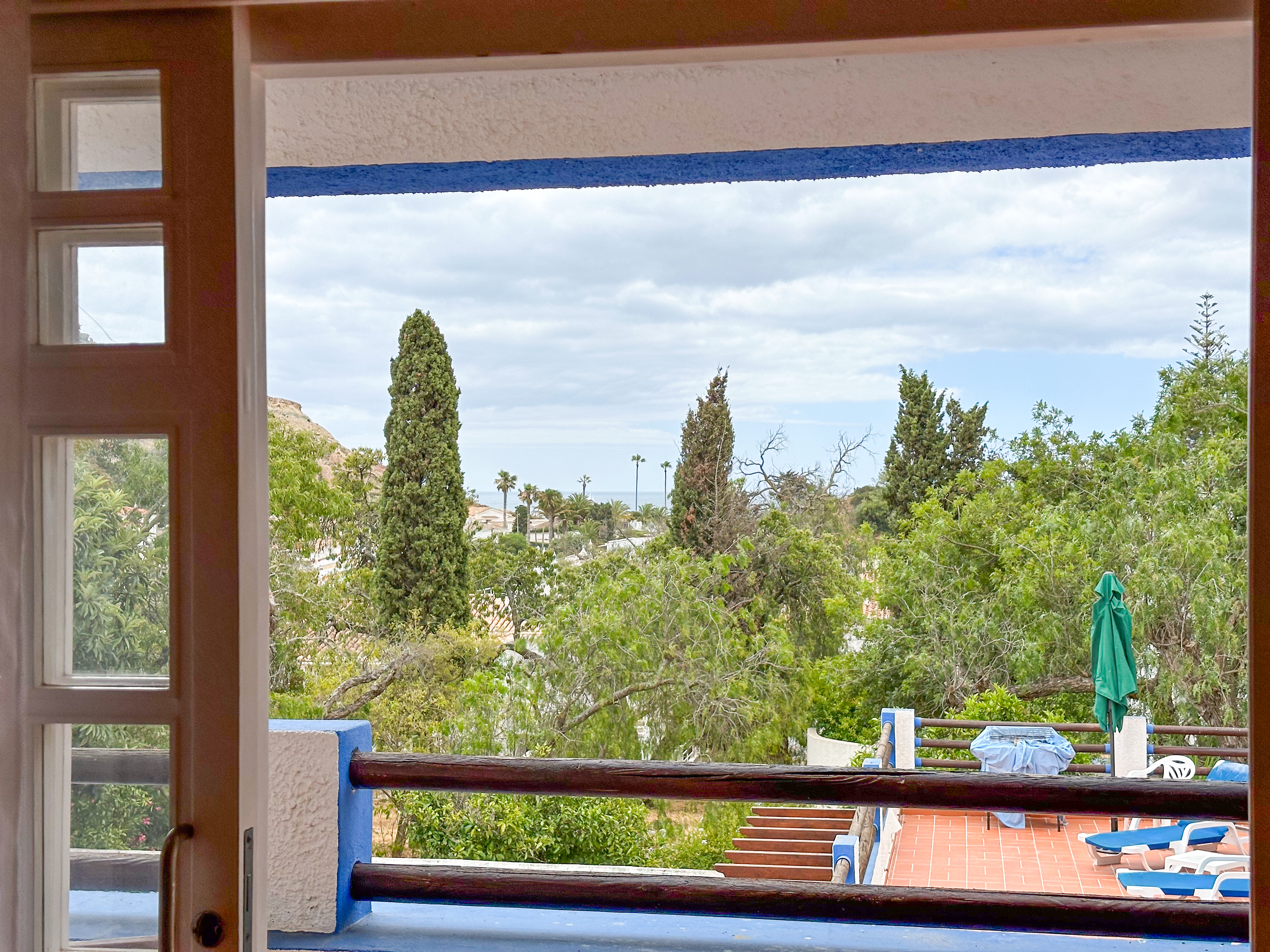 Both the living room and the double bedroom have access to the balcony, where there is a small table where you can enjoy a coffee overlooking the sea! From the balcony, you can access the pool via stairs.