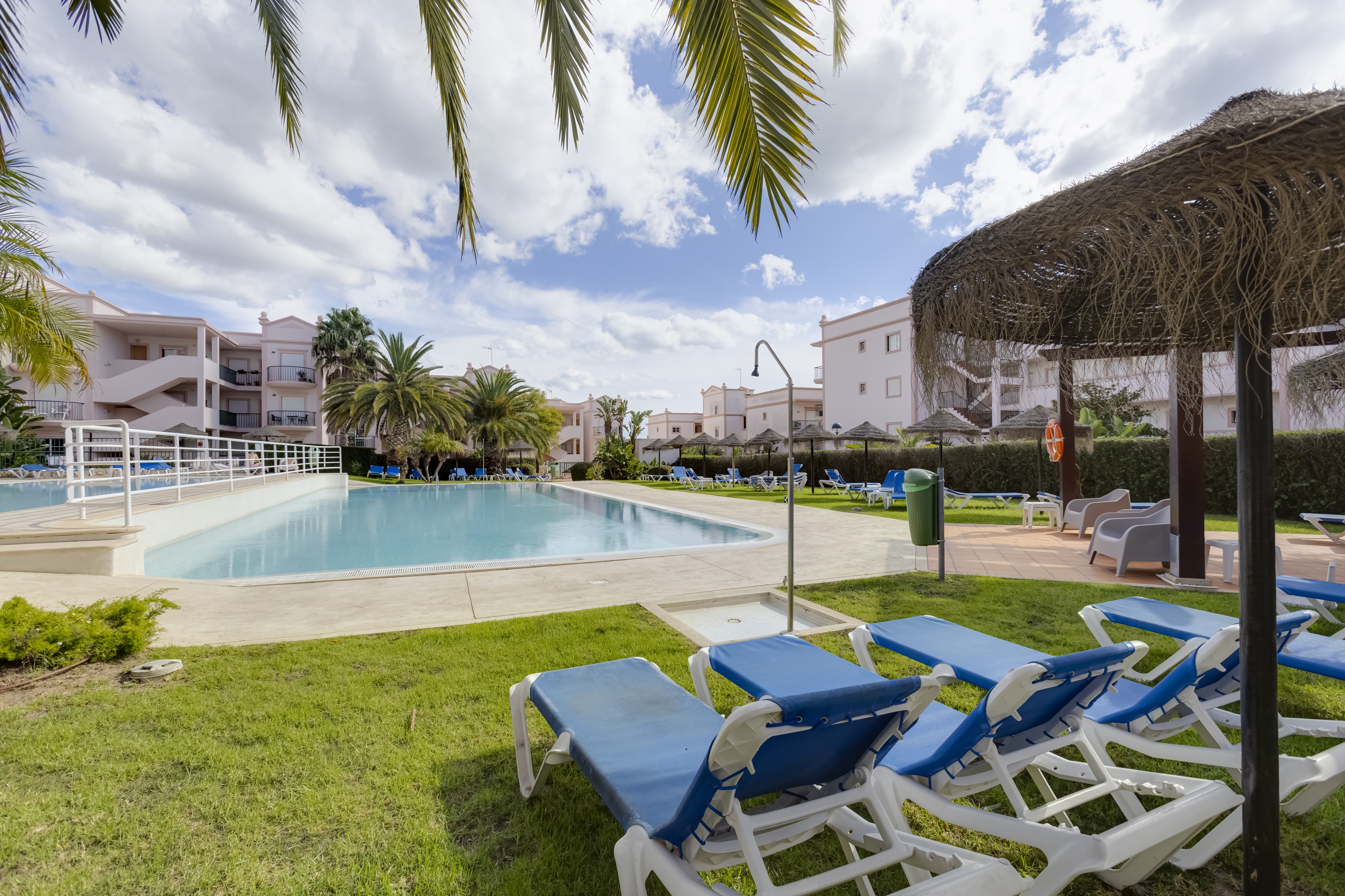 This condominium has a large outdoor pool with green areas and sun loungers, it also has a playground, which is common to all apartments.