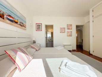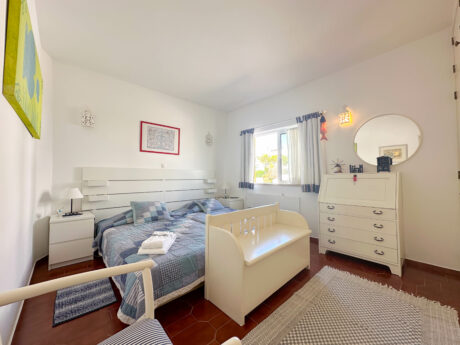 Quarto principal com duas camas, porta em vidro para a varanda virada a Sul, ar condicionado e casa de banho completa en suite. Segundo quarto também com duas camas, e roupeiro embutido. Existe uma segunda casa de banho familiar.