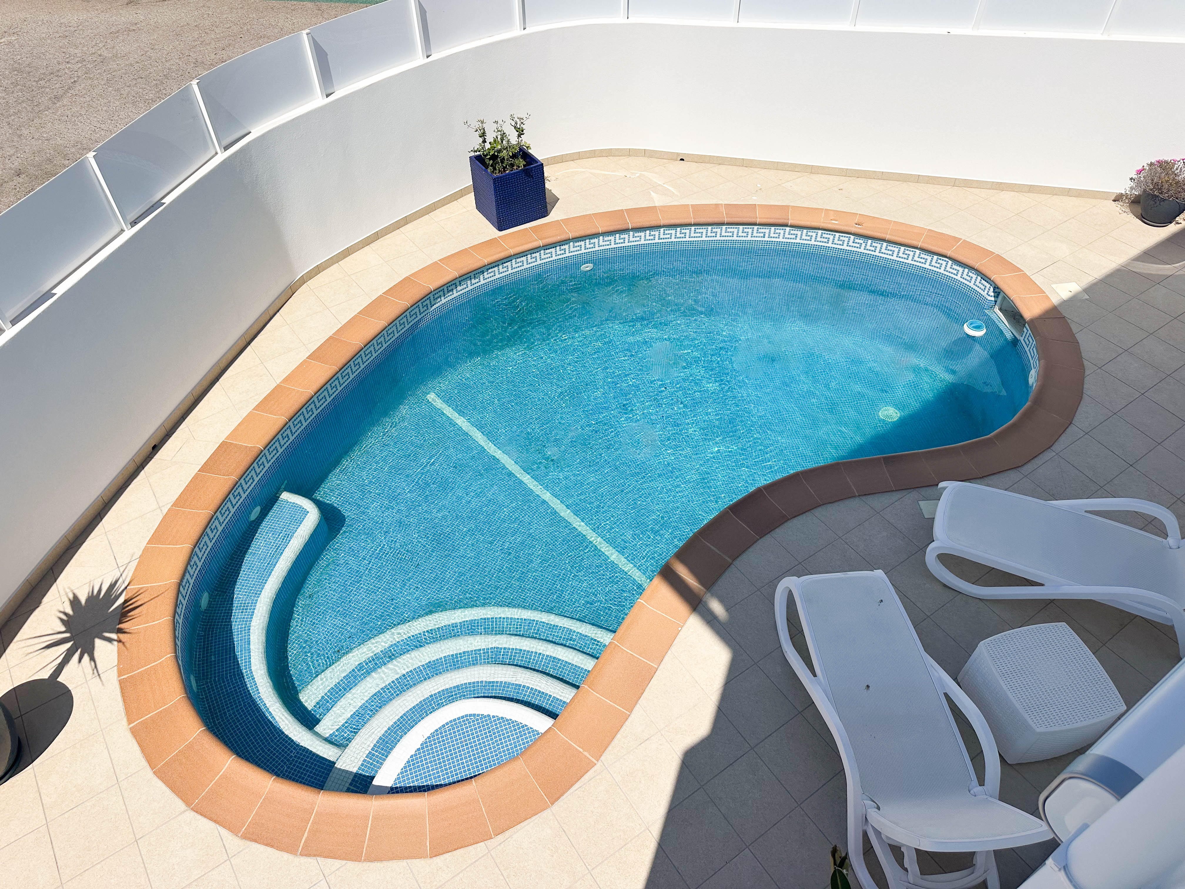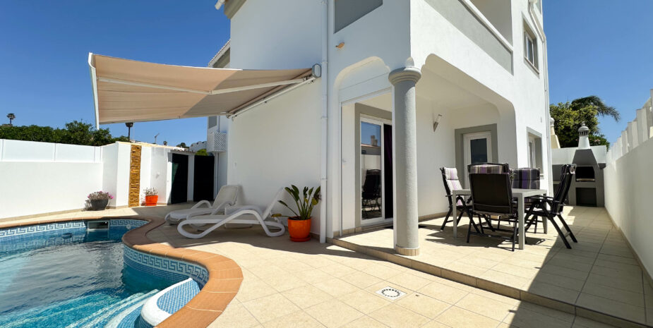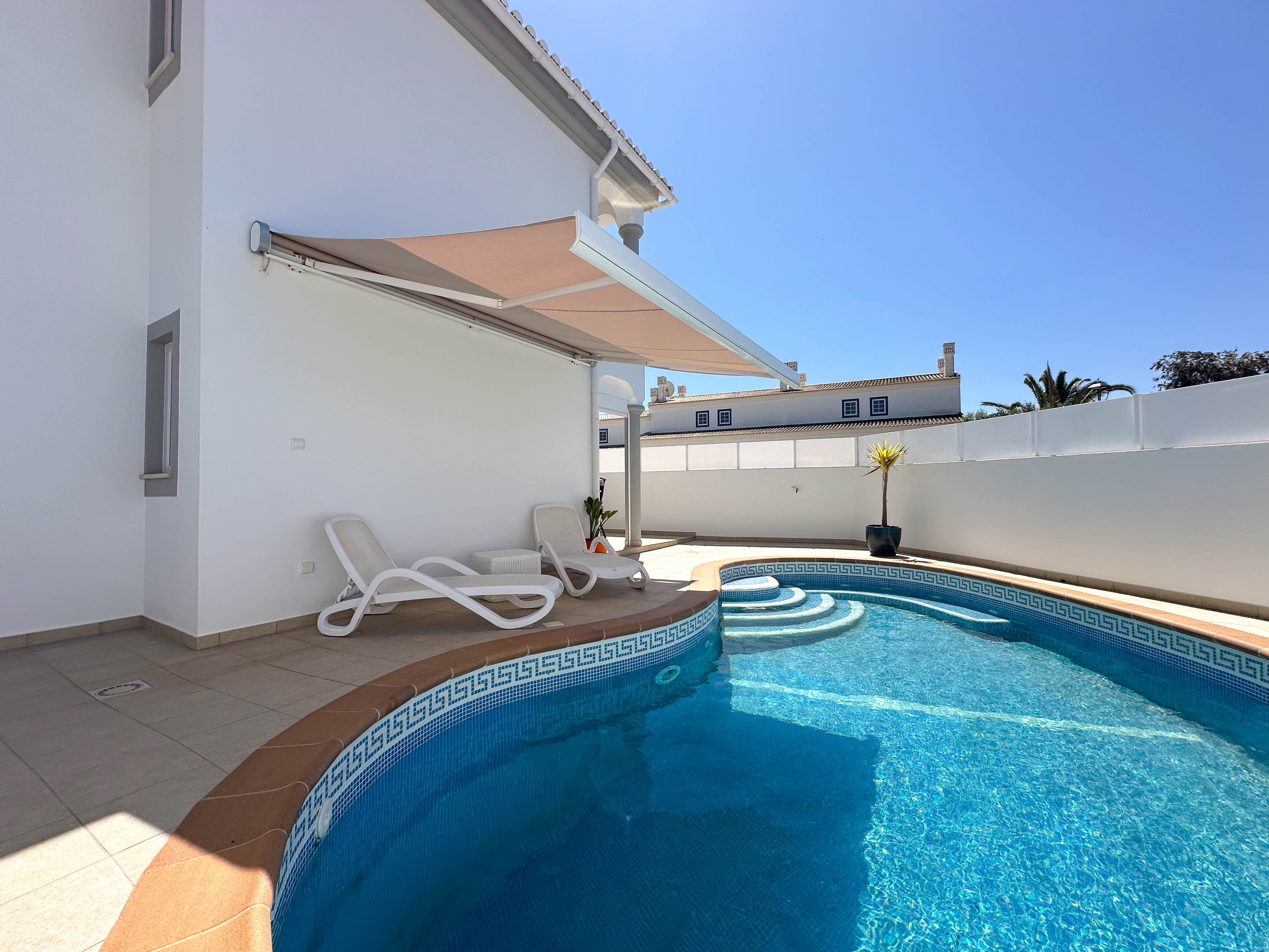 Esta moradia de 2 andares, tem 3 quartos, 2 casas de banho completas e piscina privada.