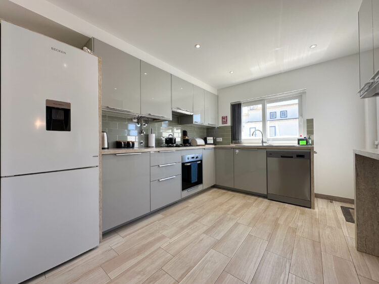 No rés do chão, encontra a cozinha que é aberta para a sala de estar e com a sala de jantar. A cozinha que está equipada com máquina de lavar loiça, frigorifico combinado, fogão, forno, micro-ondas e todos os utensílios básicos para a confeção das suas refeições. A sala de jantar tem mesa e cadeiras para 6 pessoas.