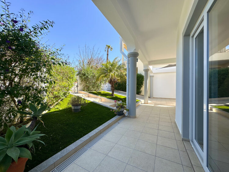 A Sala de estar é ampla, tem 2 sofás, ar condicionado, Televisão com canais HD por Cabo e Internet Fibra de Alta Velocidade. Tem janelas de correr que dão acesso à área exterior, onde pode encontrar uma mesa e cadeiras para as refeições ao ar livre, um barbecue e a piscina com espreguiçadeiras. Ainda no andar de baixo poderá encontrar uma pequena casa de banho de serviço. A máquina de lavar roupa encontra-se na garagem.