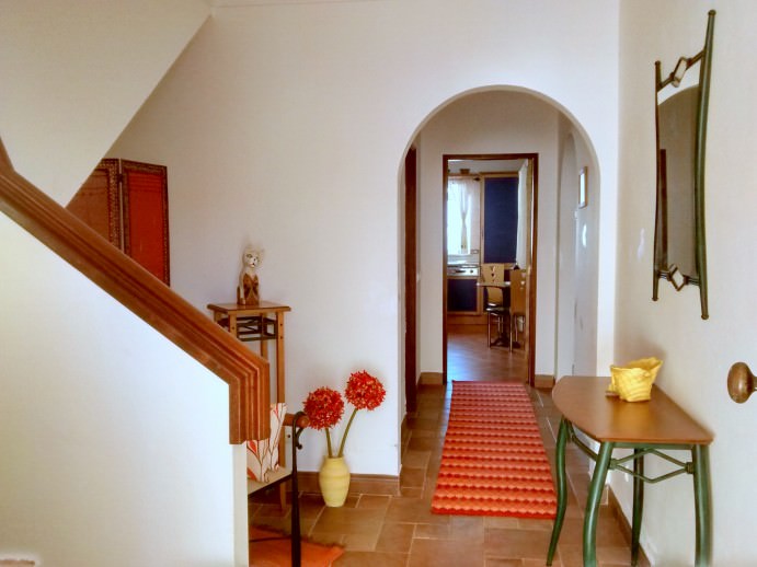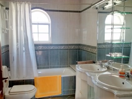 No primeiro andar tem 2 quartos, ambos com cama de casal e 1 casa de banho completa. Ambos os quartos têm ar condicionado.