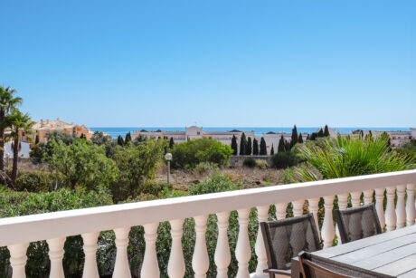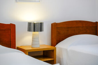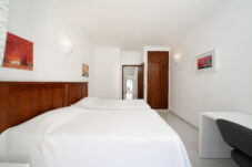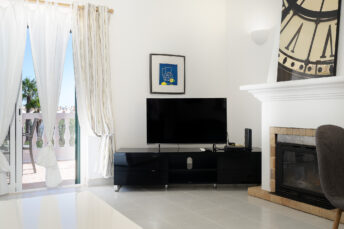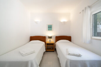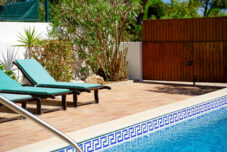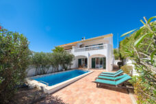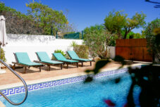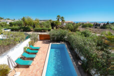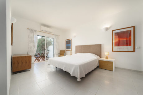 Esta moderna moradia oferece um quarto duplo com casa de banho en-suite, mais um quarto com cama de casal e um quarto de duas camas de solteiro juntas e casa de banho comum. Os quartos virados a sul têm o seu pequeno terraço privado junto à piscina.
