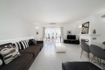 No andar de cima uma grande sala e cozinha aberta, ambos abrindo para um terraço, piscina e grande jardim. A cozinha é bem equipada e tem muito espaço para a família e os amigos cozinharem juntos. A área de estar tem bom espaço com mesa e cadeiras e um sofá largo, uma TV plana com Canais HD da TV por Cabo esta dá para um terraço com espaço para uma refeição ou churrasco. Esta Vila também tem Internet Fibra de Alta Velocidade.