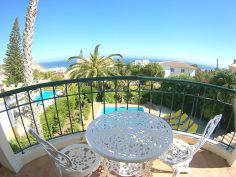 Esta é uma Vivenda ampla e confortável, bem localizada junto ao Hotel da Belavista e com vista do mar. Tem três quartos no primeiro andar. Um quarto de casal com casa de banho en-suite, um segundo quarto de casal e um terceiro quarto com duas camas de solteiro. Neste piso tem ainda uma casa de banho comum. Os quartos dão para uma varanda comum com vista do mar. Há ainda uma terceira casa de banho com chuveiro no andar de baixo.