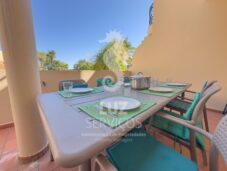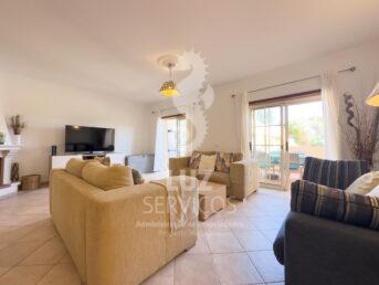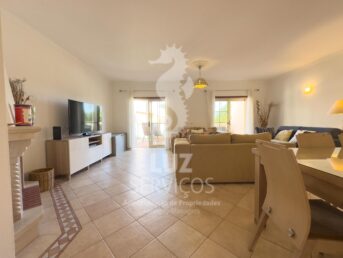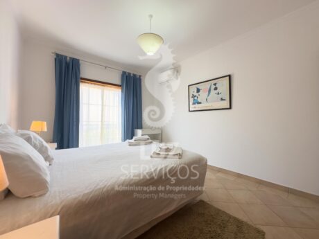 O apartamento tem um quarto principal com uma casa de banho privada e uma cama de casal e mais 2 quartos duplos, um destes tem uma varanda com vista para a piscina, no rés do chão tem-se a sala com mesa de jantar para 6 pessoas e sofás com Televisão por Satélite, TV HD por Cabo, DVD e Internet Fibra de Alta Velocidade.