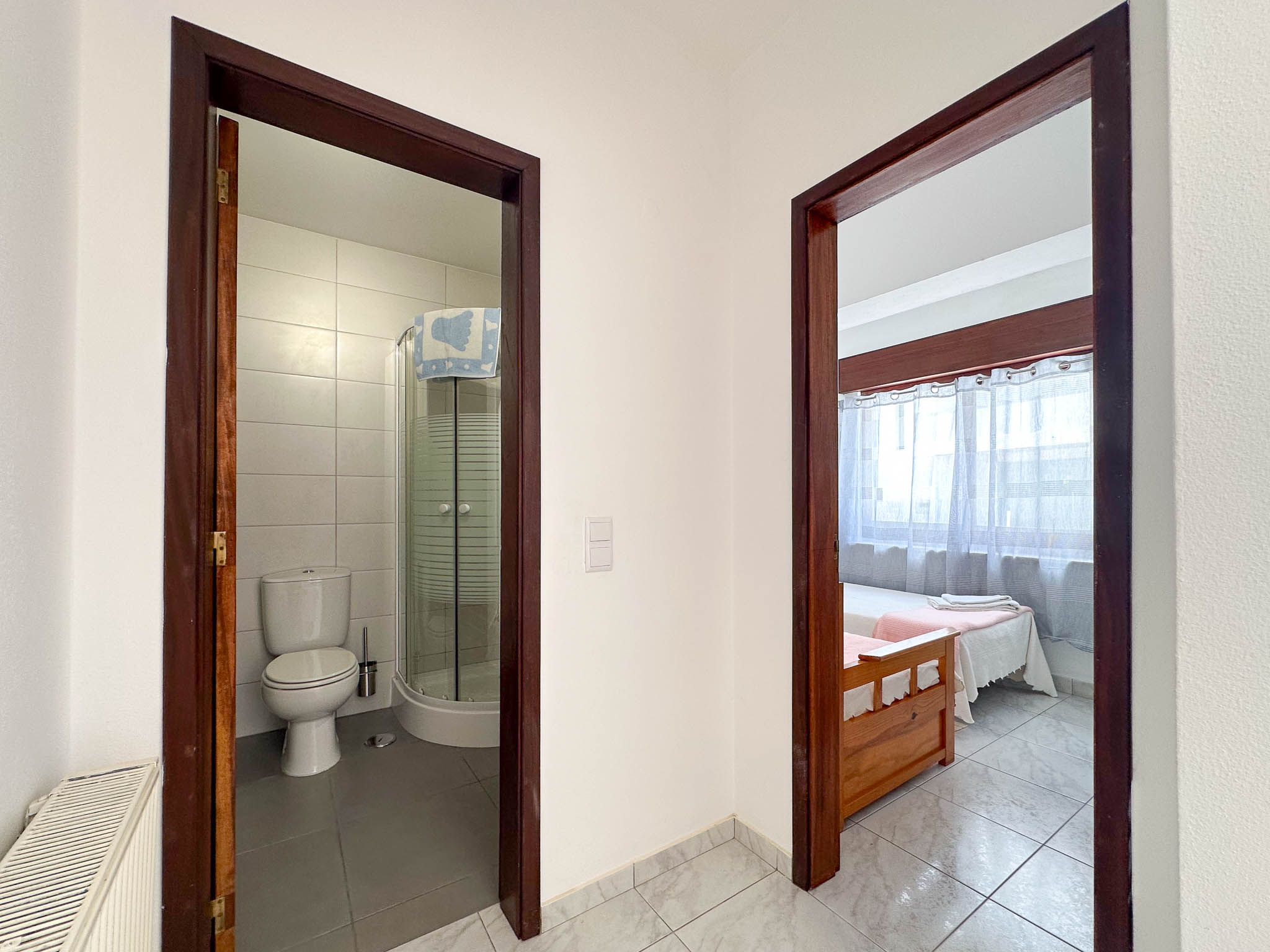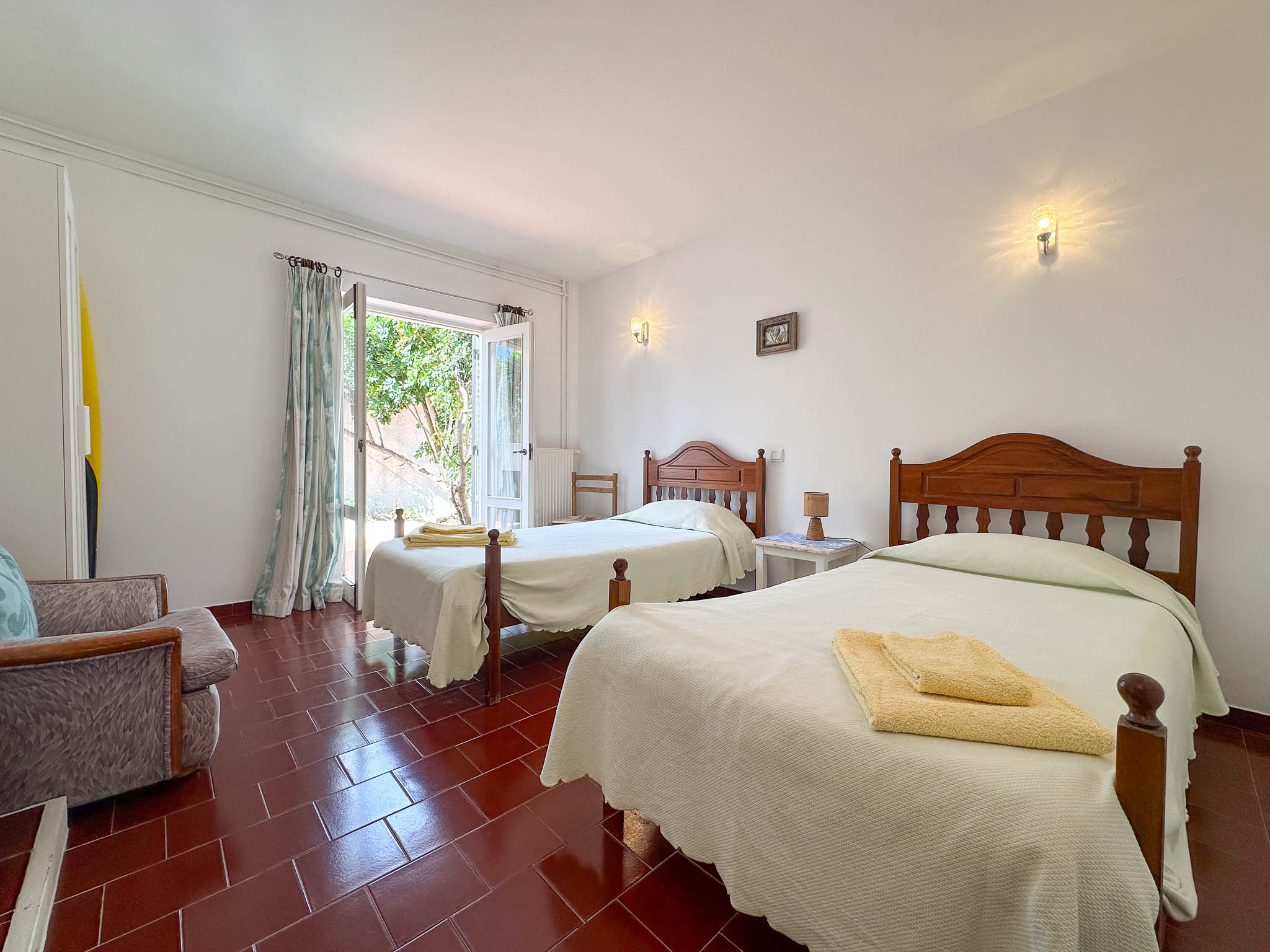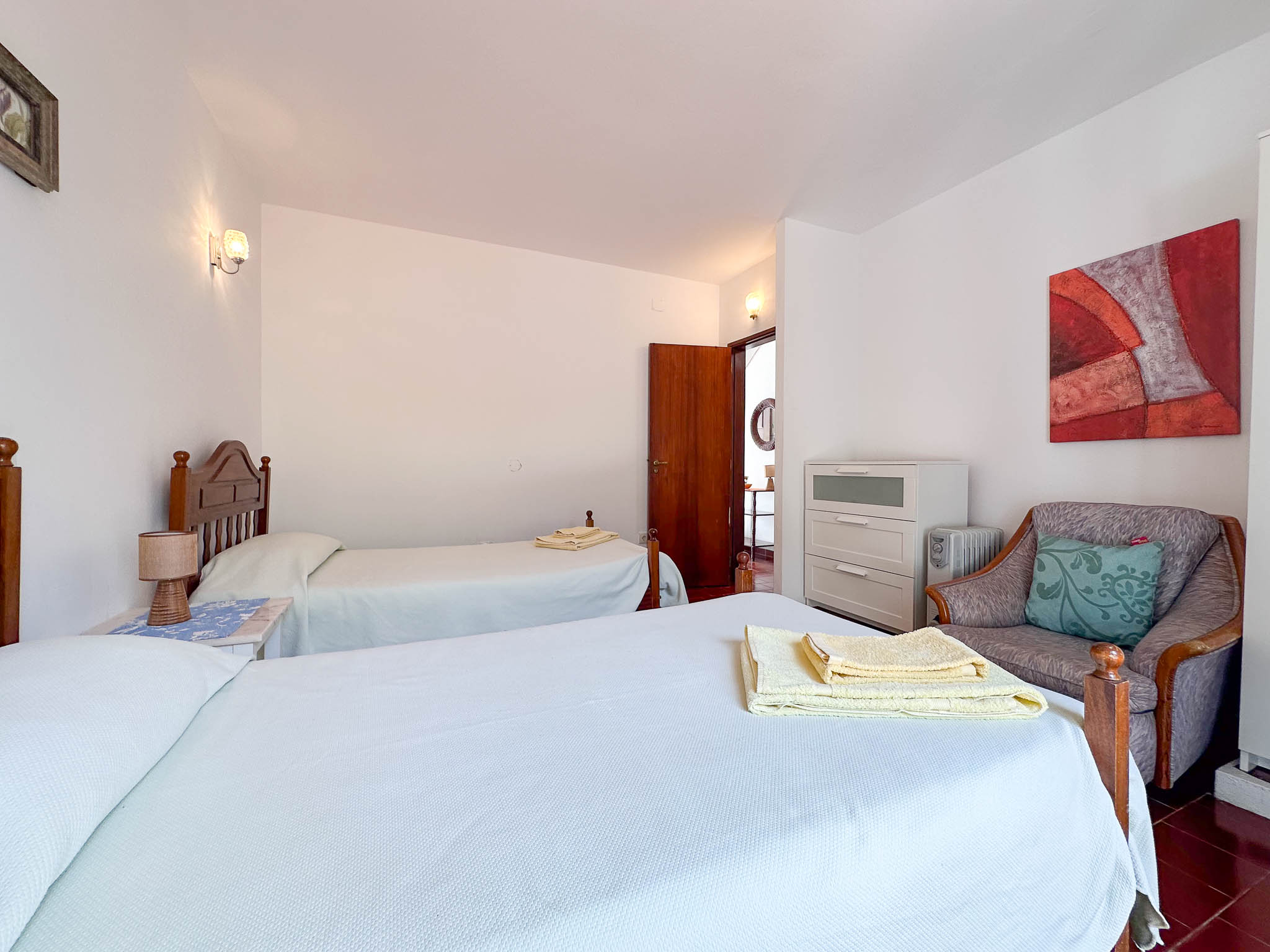 No rés do chão, poderá encontrar 2 quartos com camas de solteiro e 2 casas de banho, uma delas totalmente renovada com duche e outra com banheira. Através de um dos quartos tem acesso ao terraço da propriedade, onde poderá encontrar um pequeno jardim com mobiliário exterior para relaxar no fim do dia. Tem também uma pequena arrecadação, onde poderá encontrar a máquina de lavar roupa.