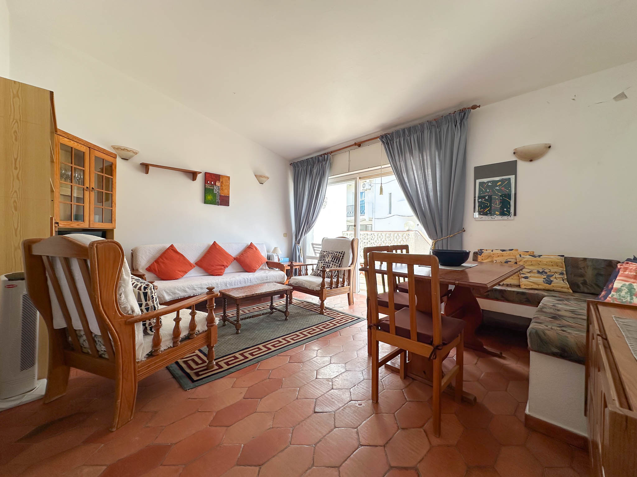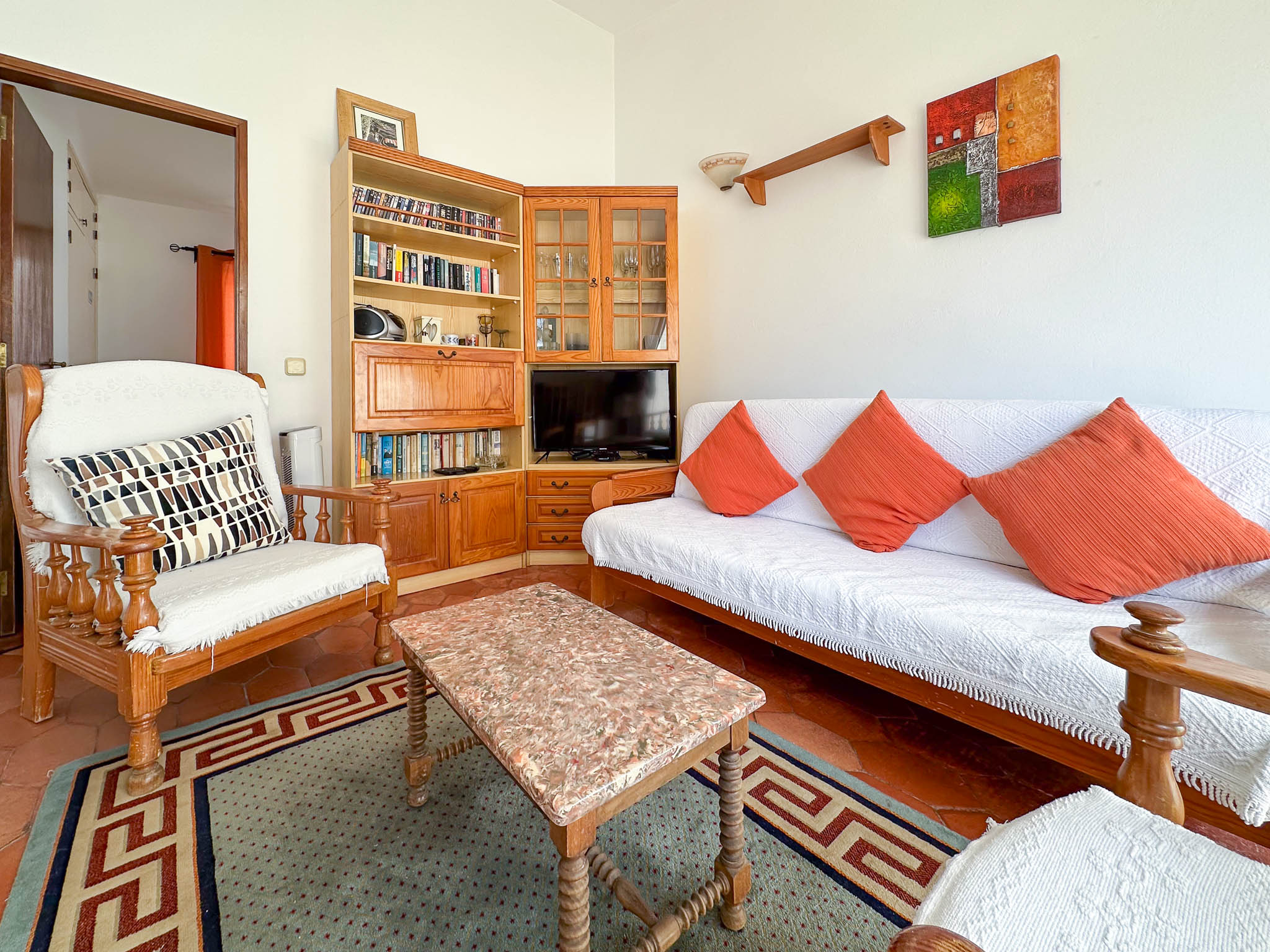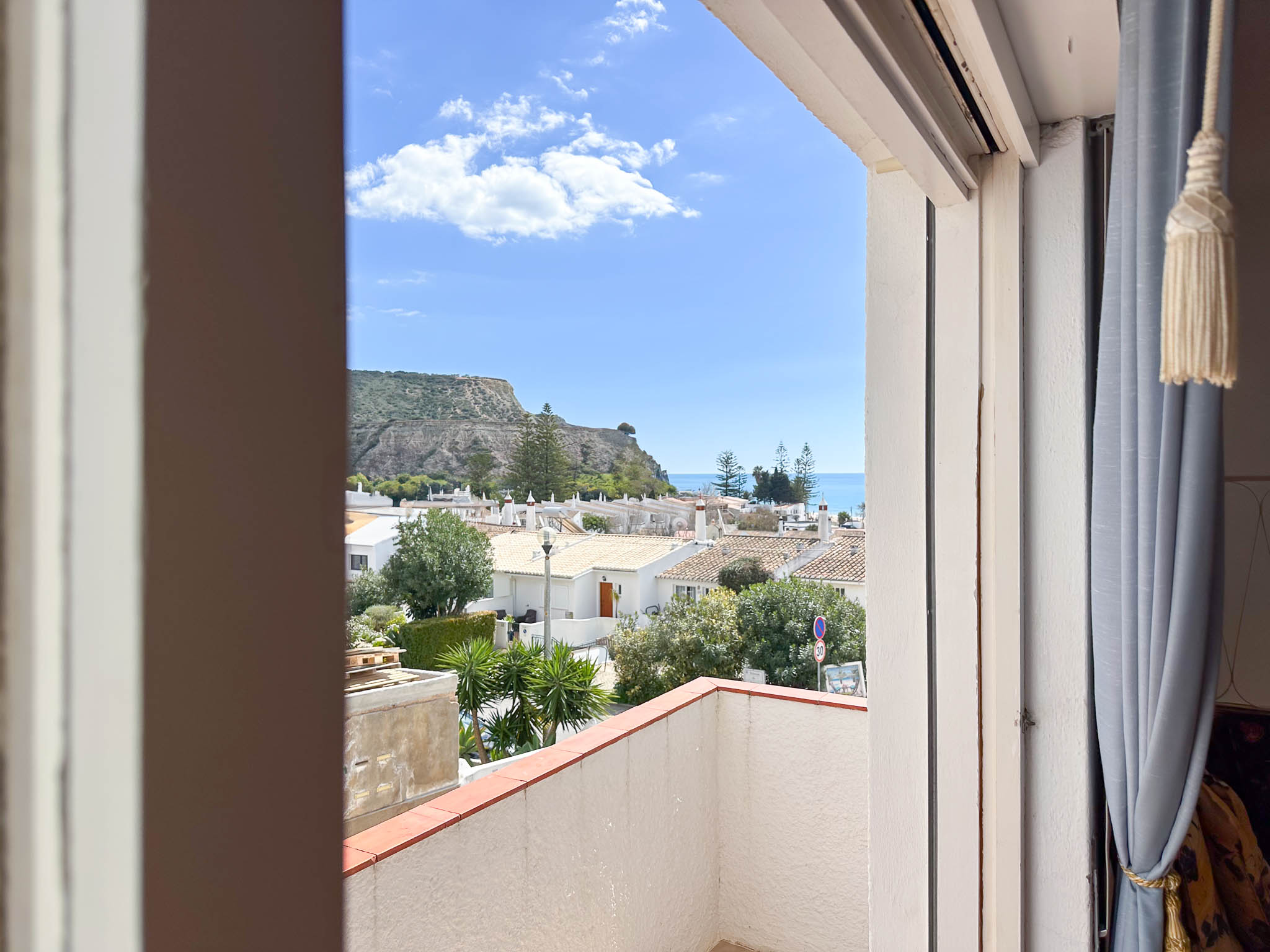 A sala tem sofás, tv com canais MEO, internet fibra de alta velocidade e uma mesa de jantar com lugar para 6 pessoas. Tem também acesso para uma pequena varanda onde poderá disfrutar da magnifica vista sobre o mar e os famosos rochedos da praia da Luz.
