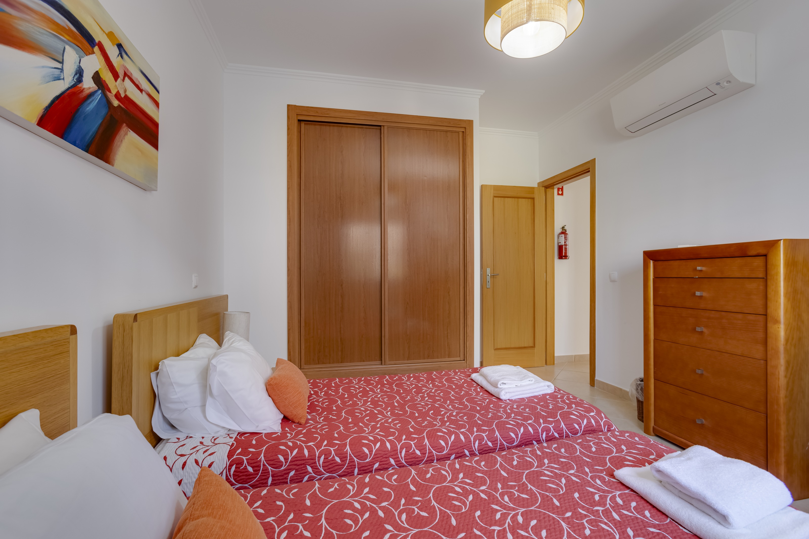 O quarto principal tem uma cama de casal, uma varanda e uma casa de banho en-suite com duche. O outro quarto tem 2 camas de solteiro. Ambos os quartos têm roupeiros embutidos e ar condicionado. No meio dos quartos poderá encontrar a casa de banho comum que tem banheira.