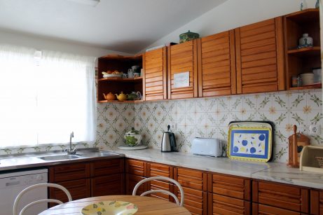 Largas portas de correr vão dar ao espaçoso terraço com mesas e cadeiras, guarda sol, e cadeiras reclináveis, este tem uma escada de caracol exterior que liga ao terraço do rés do chão. A cozinha está bem equipada com mesas de mármore, com micro-ondas, maquina de lavar louça, e maquina de lavar roupa.