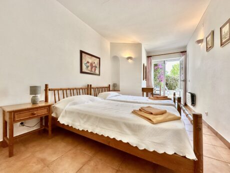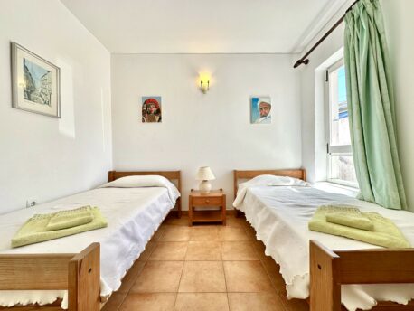 O rés do chão tem 3 Quartos, um com cama de casal, os outros dois quartos têm 2 camas de solteiroo cada. Com uma casa de banho completa e um lavabo com sanita, ambos renovados. Dois dos quartos dão para um pequeno jardim virado a sul com camas para tomar sol.