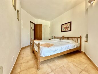 O Rés do Chão tem 3 Quartos, um com cama de casal, os outros dois quartos têm 2 camas de solteiroo cada. Com uma casa de banho completa e um lavabo com sanita, ambos renovados. Dois dos quartos dão para um pequeno jardim virado a Sul com camas para tomar sol.