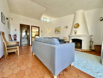 No primeiro andar, encontra uma sala de estar e jantar com uma lareira, que vai dar a um terraço com uma mesa e cadeiras de exterior. A cozinha é grande e moderna, completamente equipada com máquinas de roupa e louça, frigorífico combinado, microondas, etc.