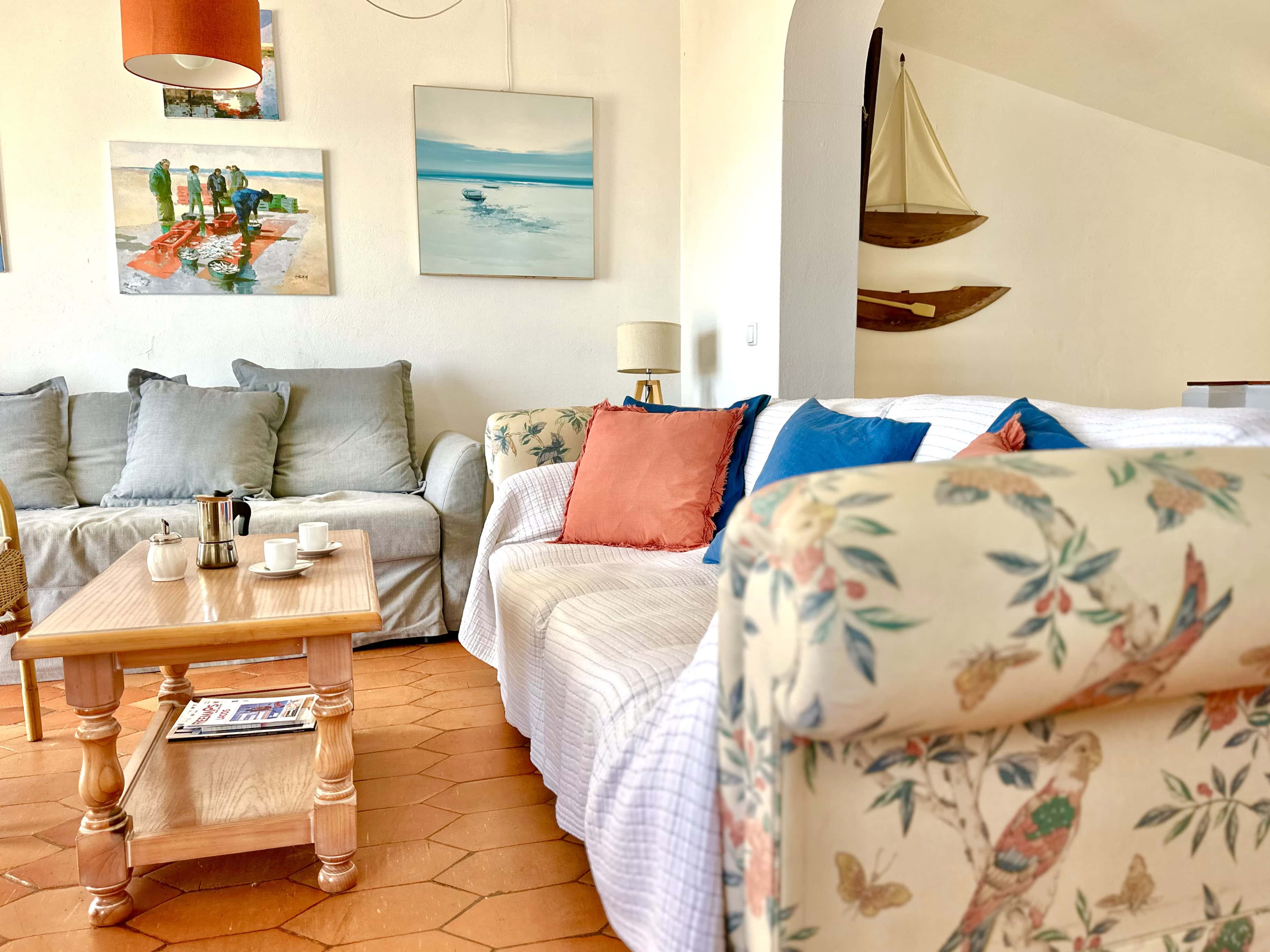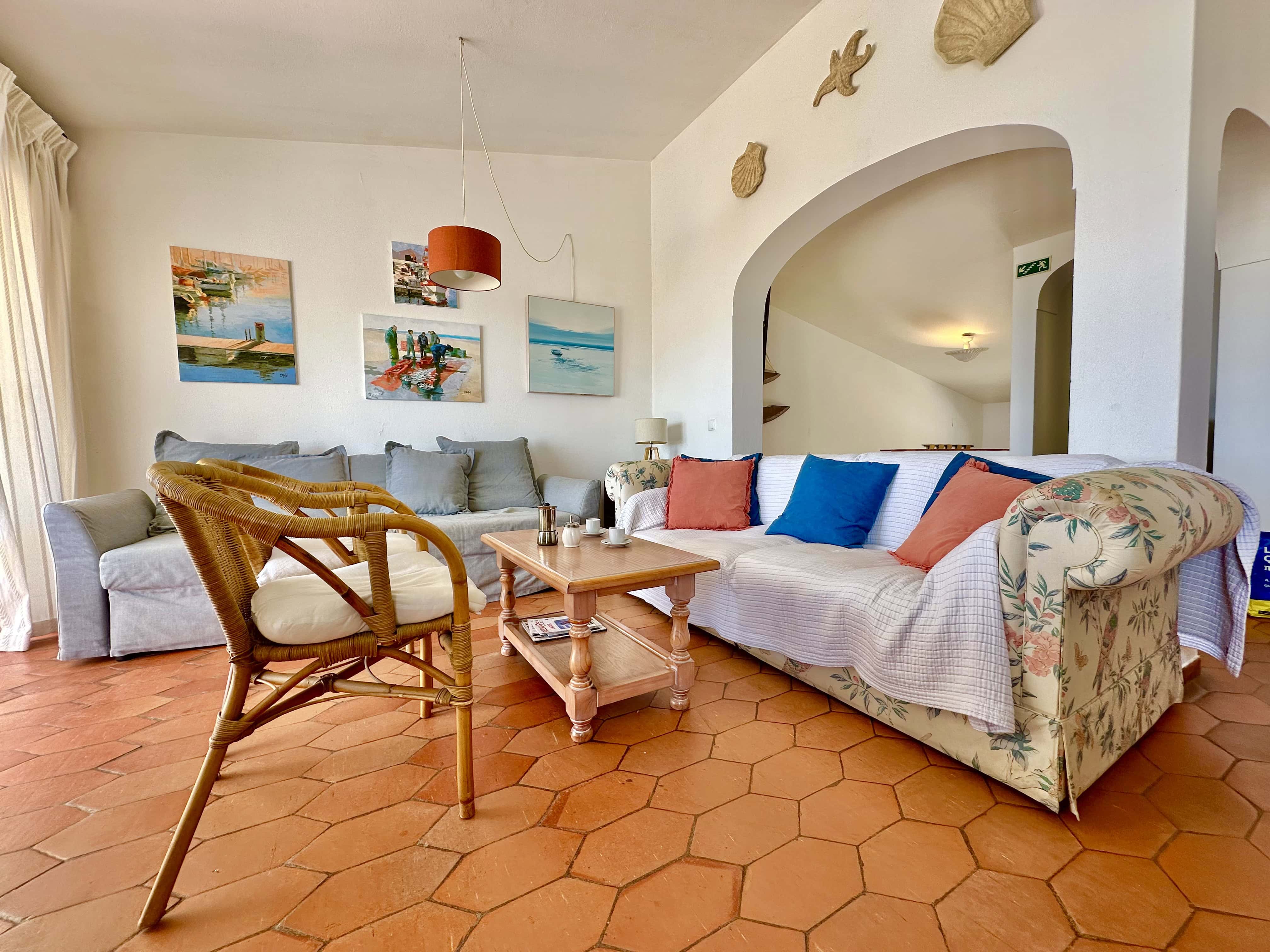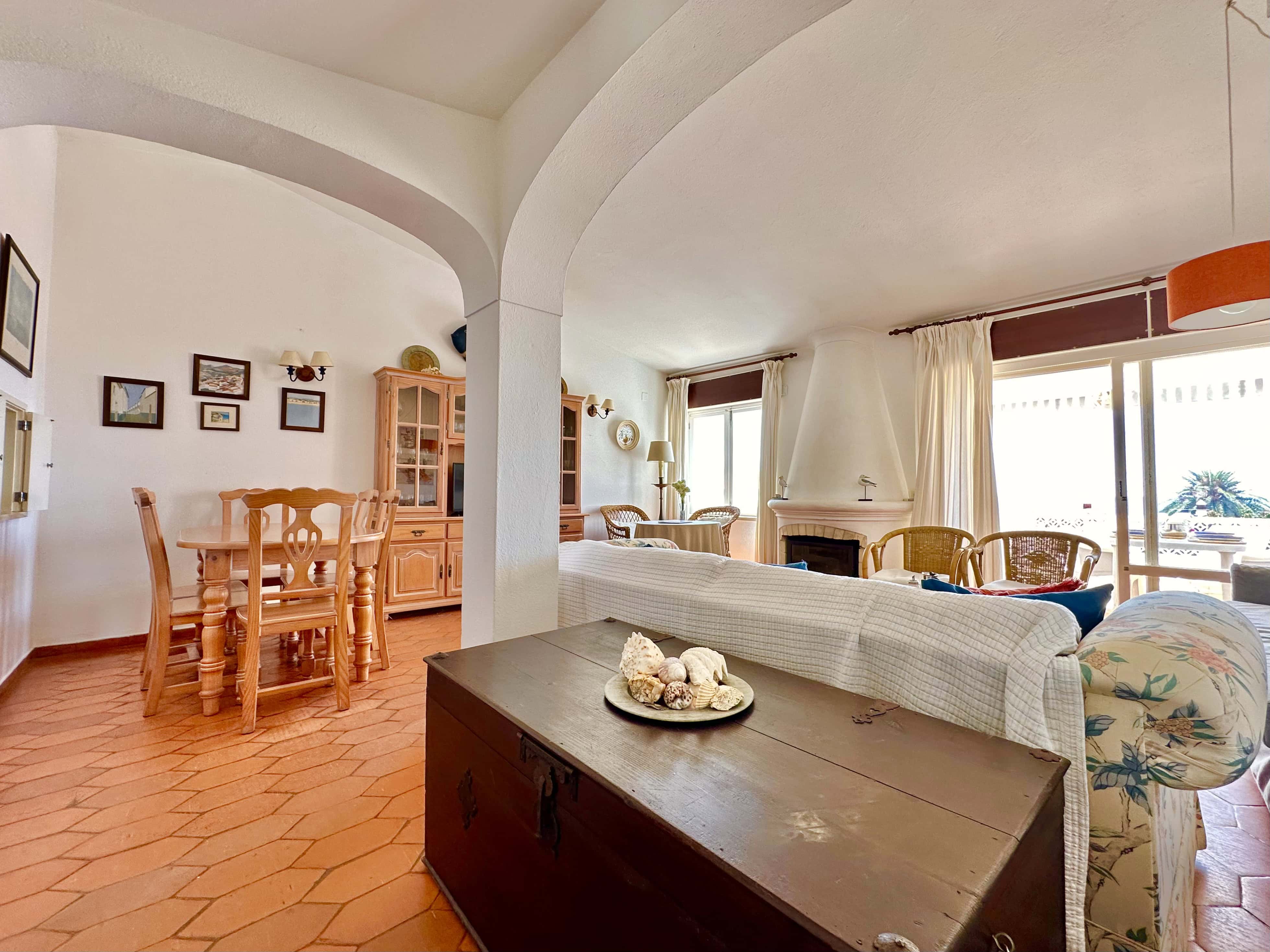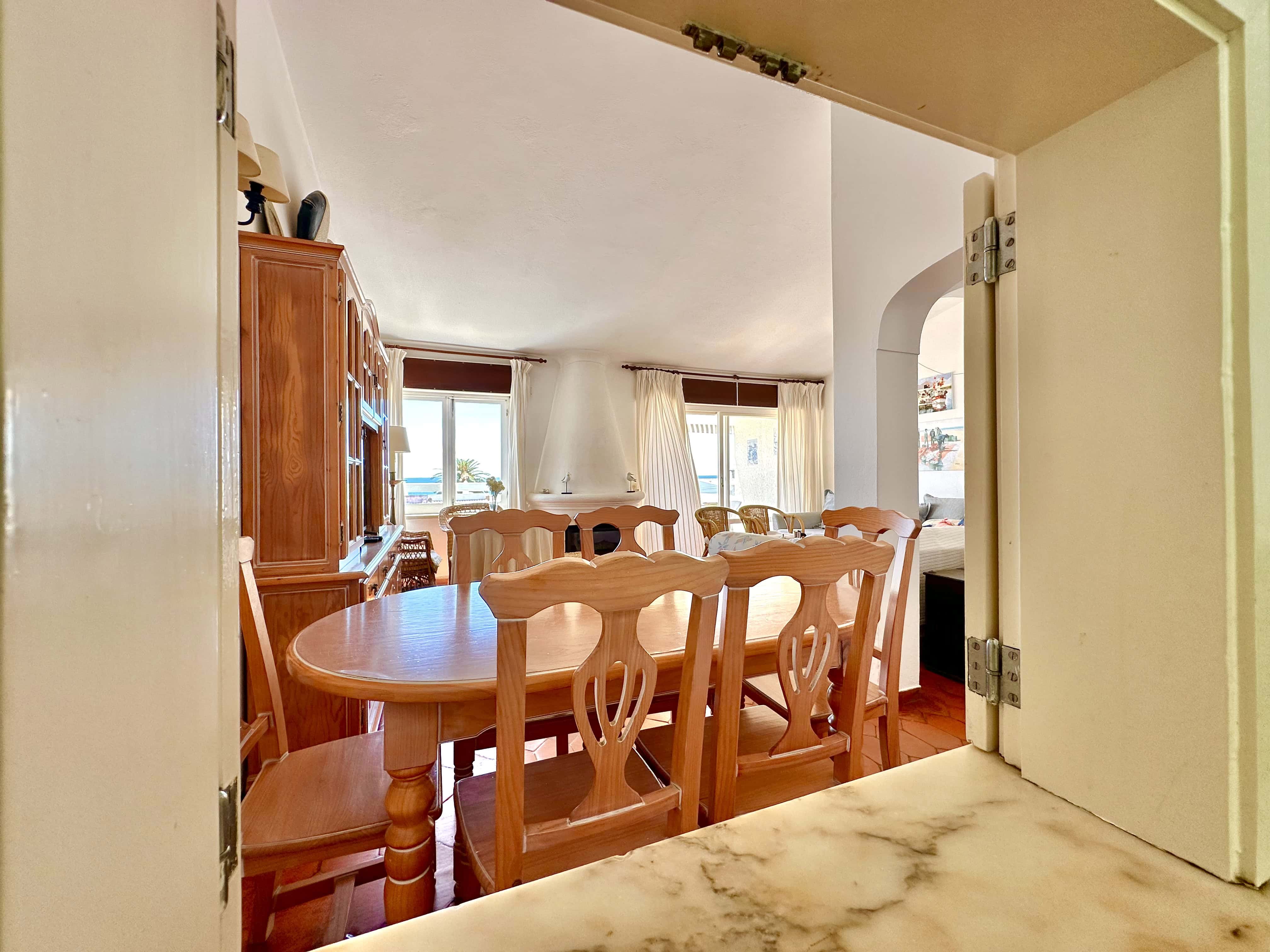 A sala de estar e jantar é ampla com Televisão MEO e Internet com Wifi. A sala dá para um grande terraço, virado a Sul, com uma vista incrível da Praia para tomar refeições ou apanhar Sol e relaxar.