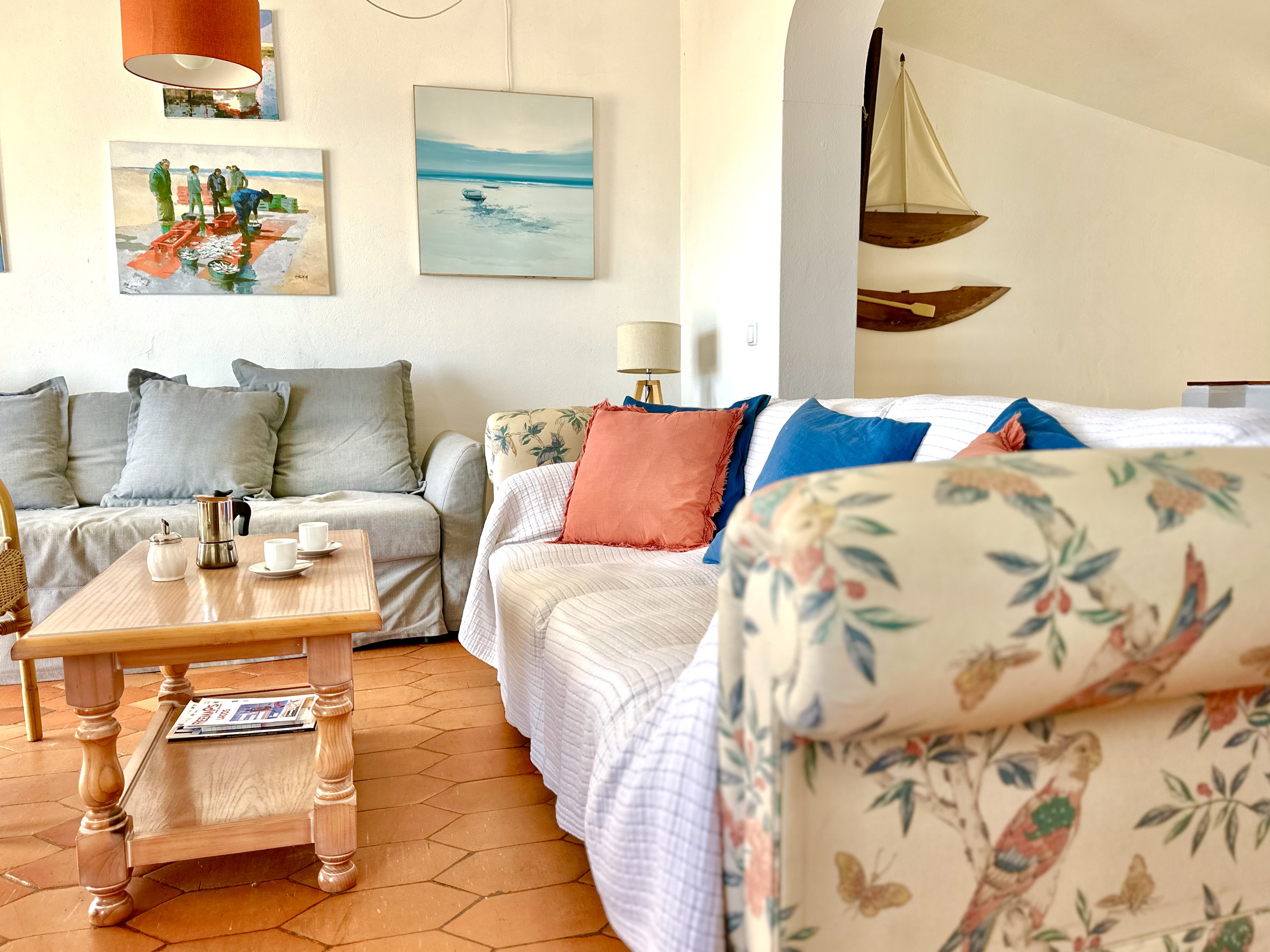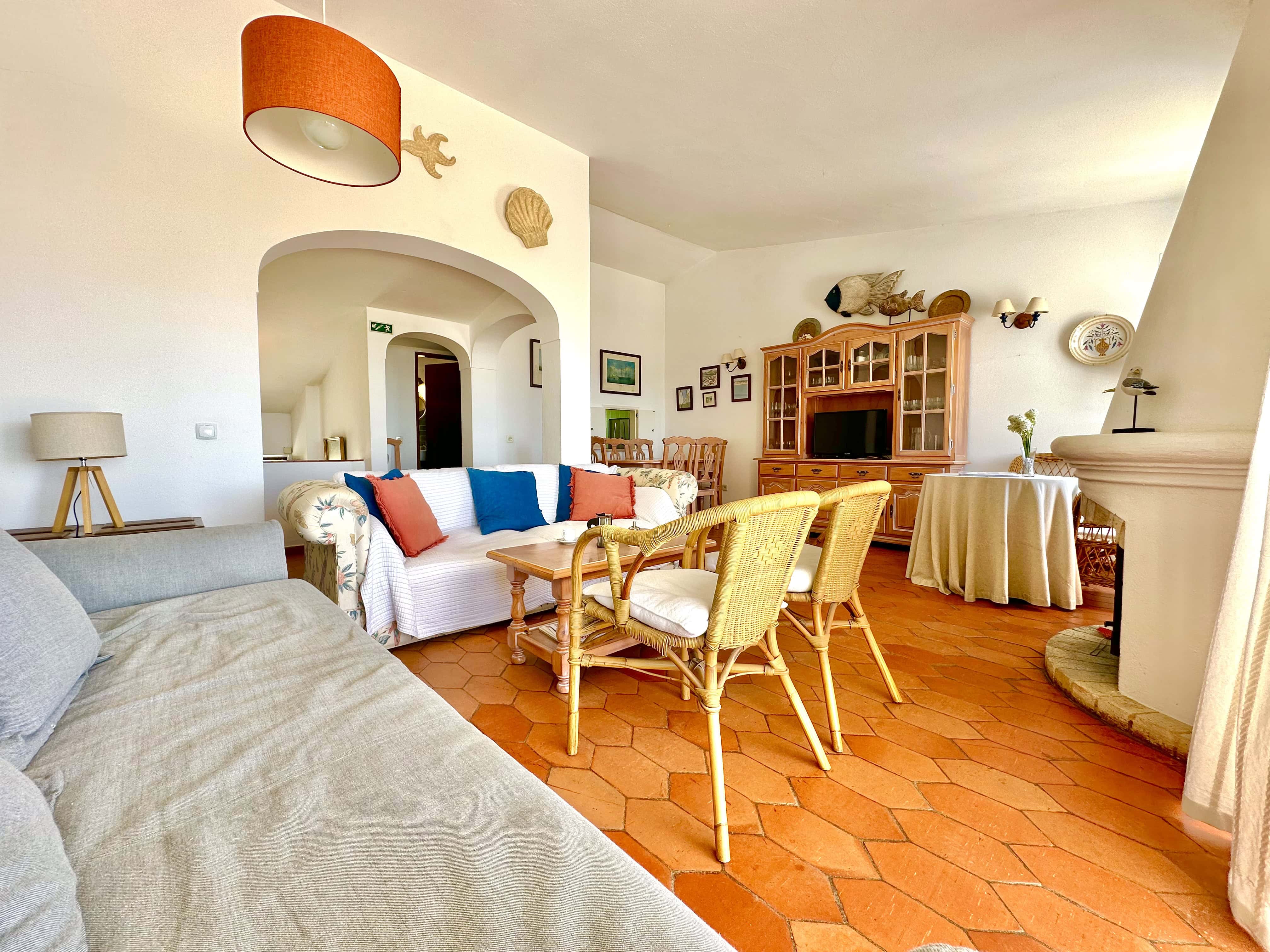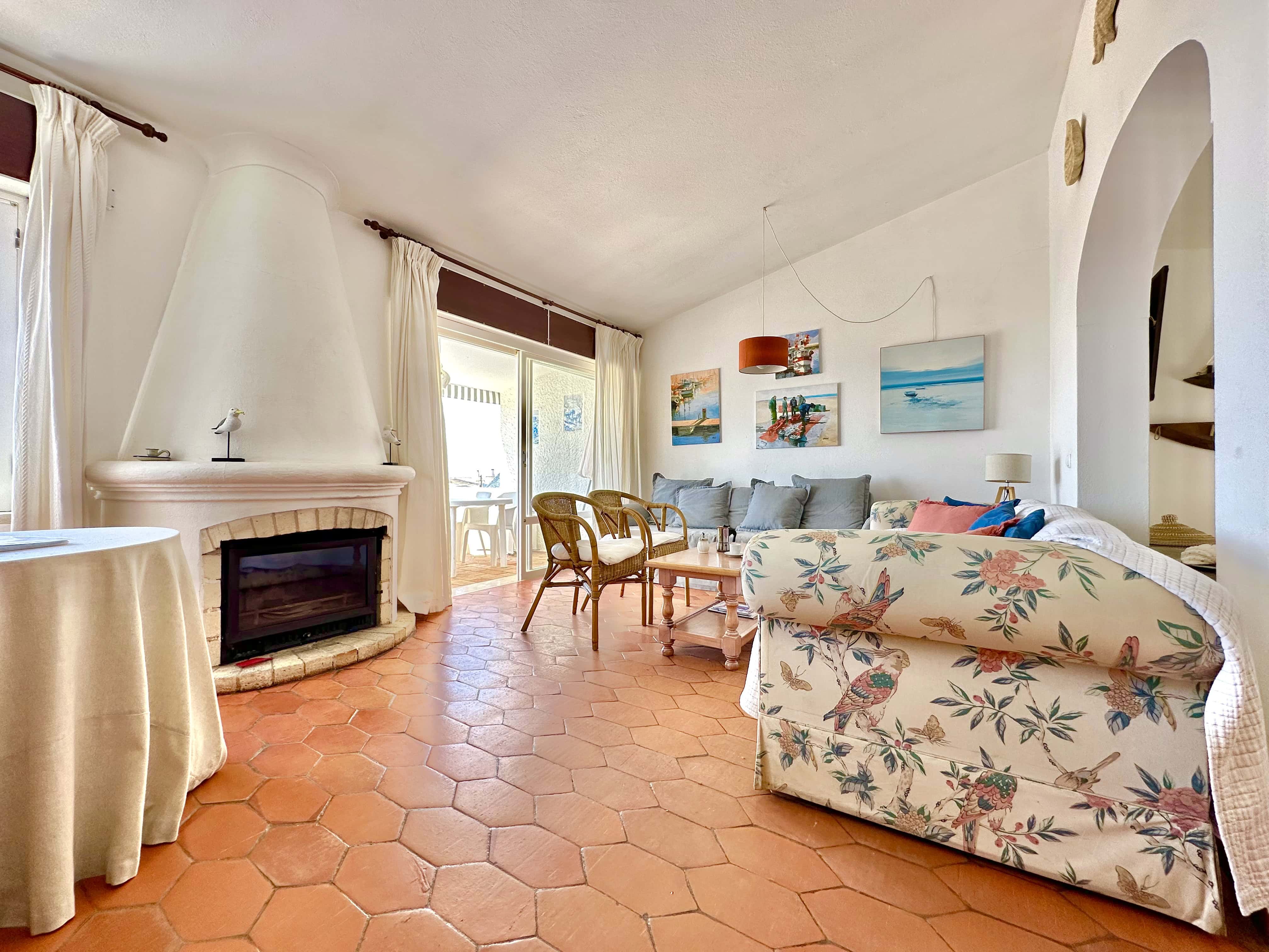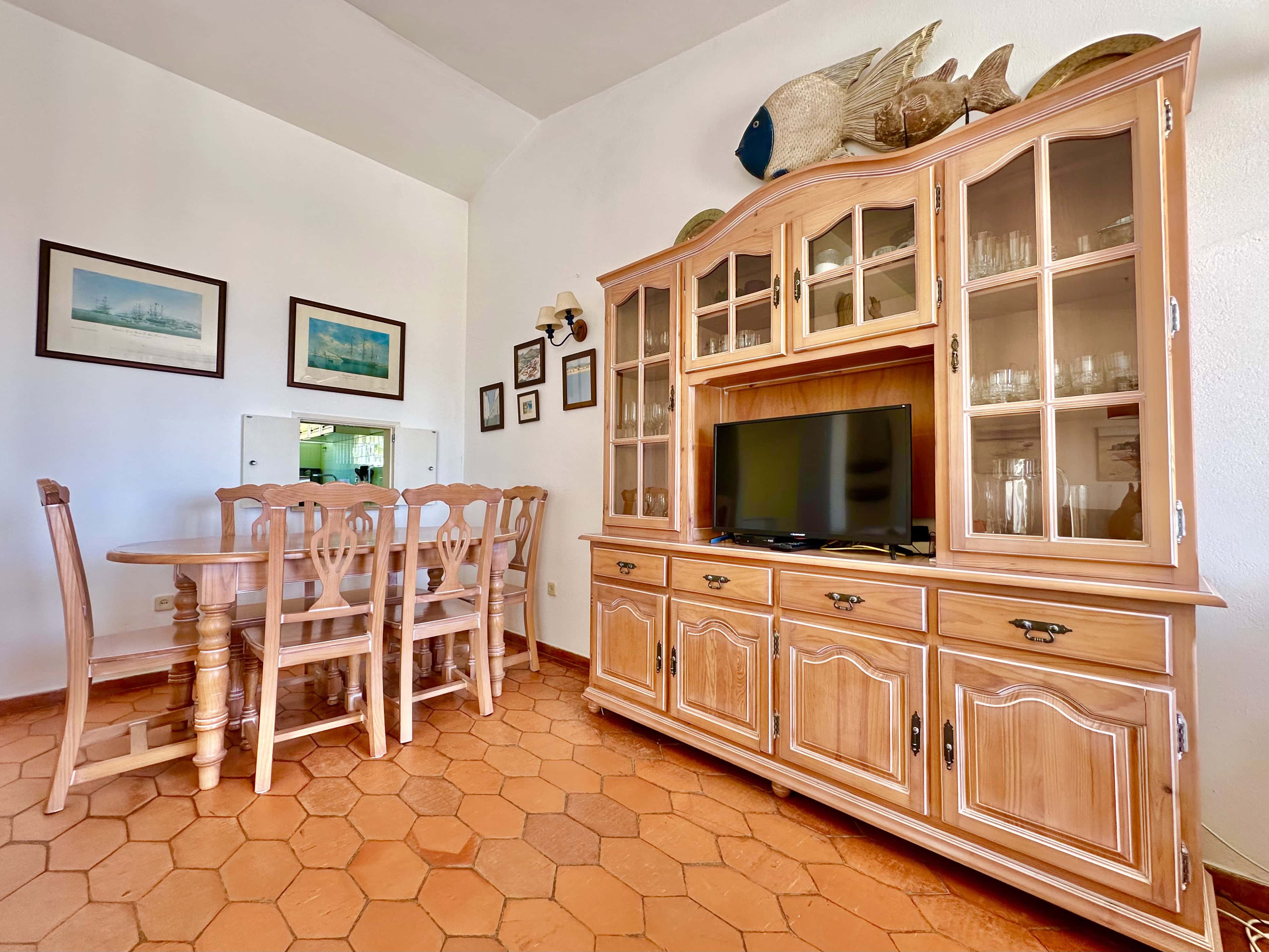 A sala de estar e jantar é ampla com Televisão MEO e Internet com Wifi. A sala dá para um grande terraço, virado a Sul, com uma vista incrível da Praia para tomar refeições ou apanhar Sol e relaxar.