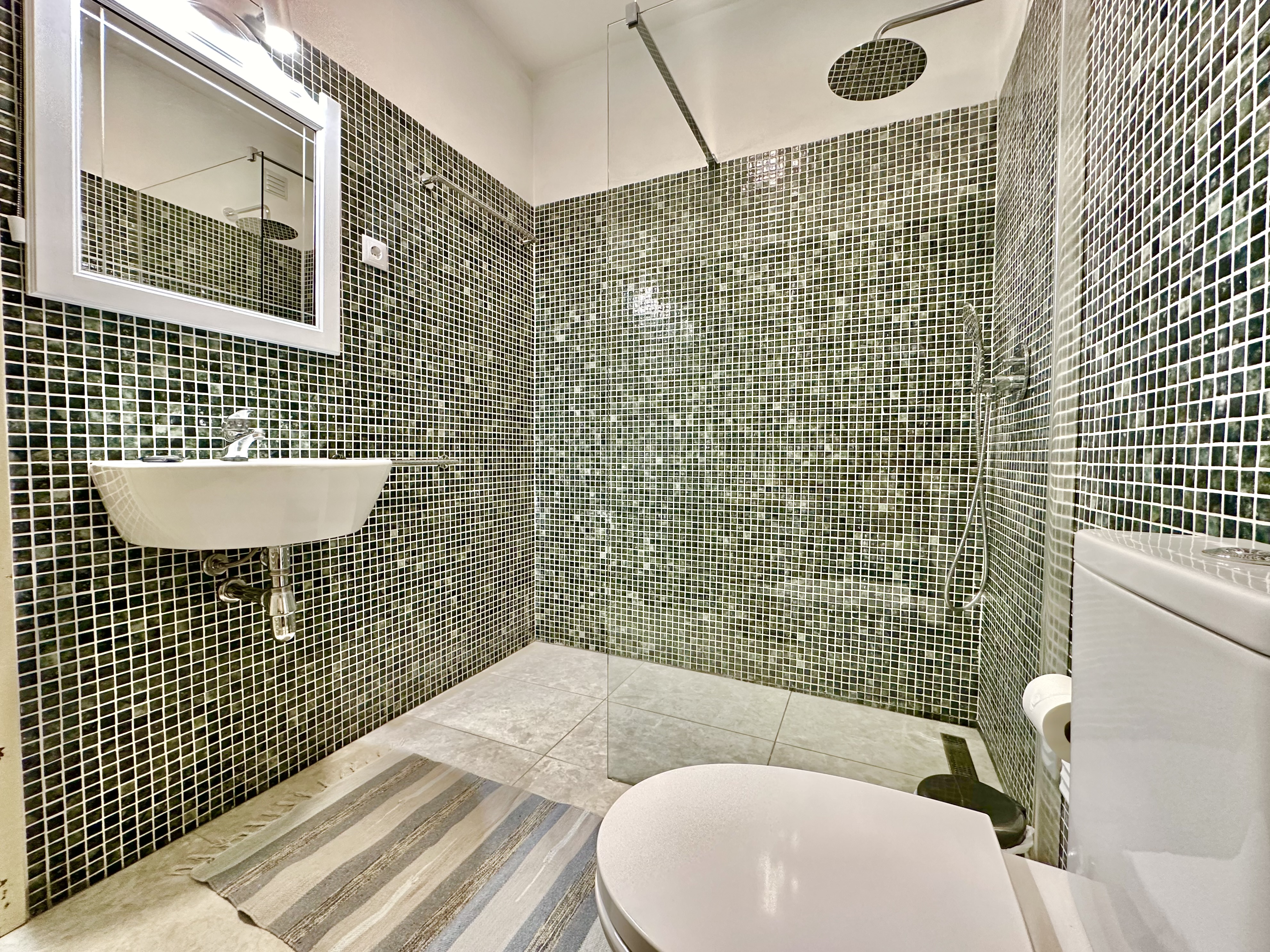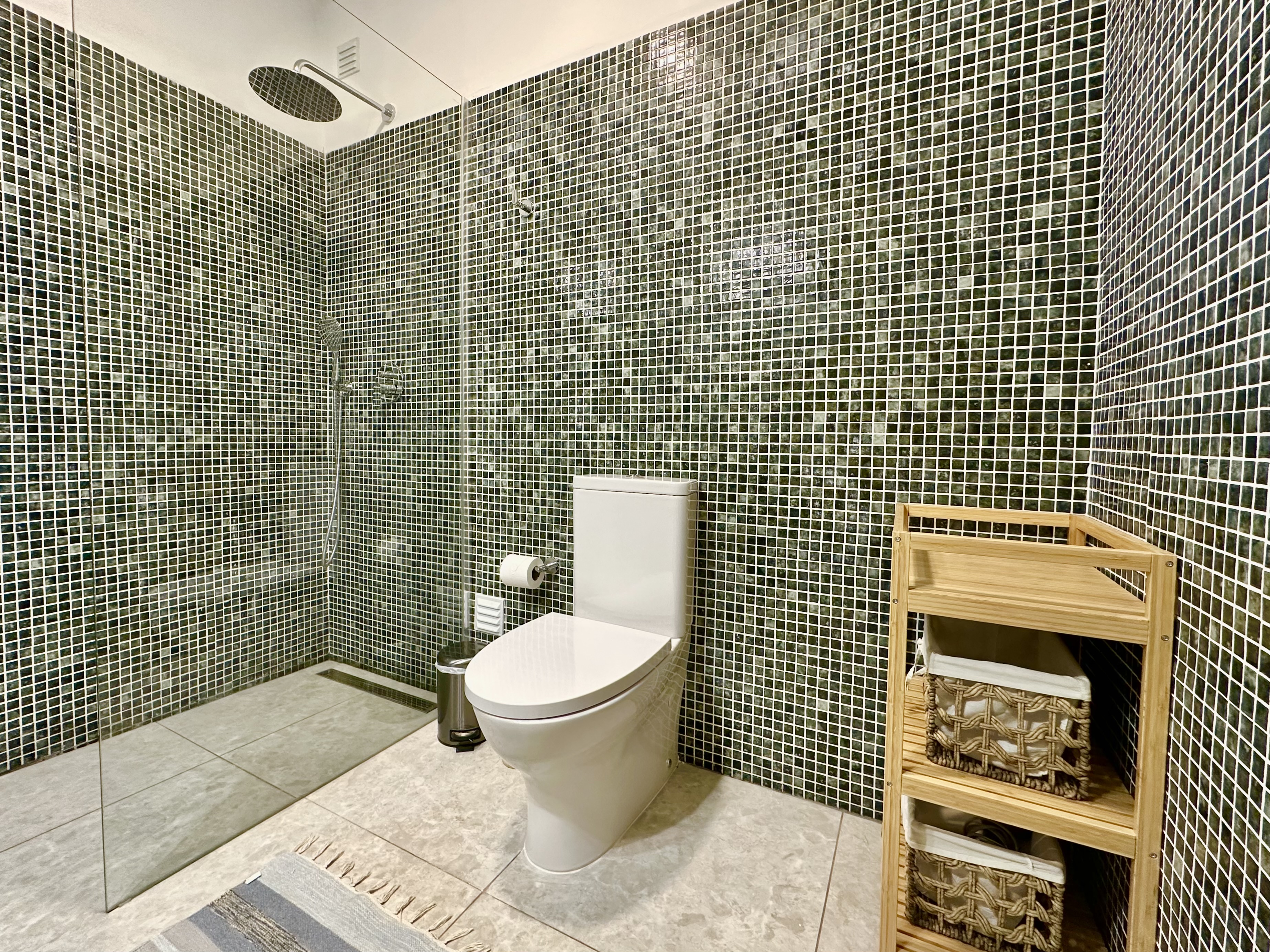 No piso térreo tem 3 quartos, todos com camas de casal e duas casas de banho, ambas com banheira. Todos os quartos têm acesso a um terraço.