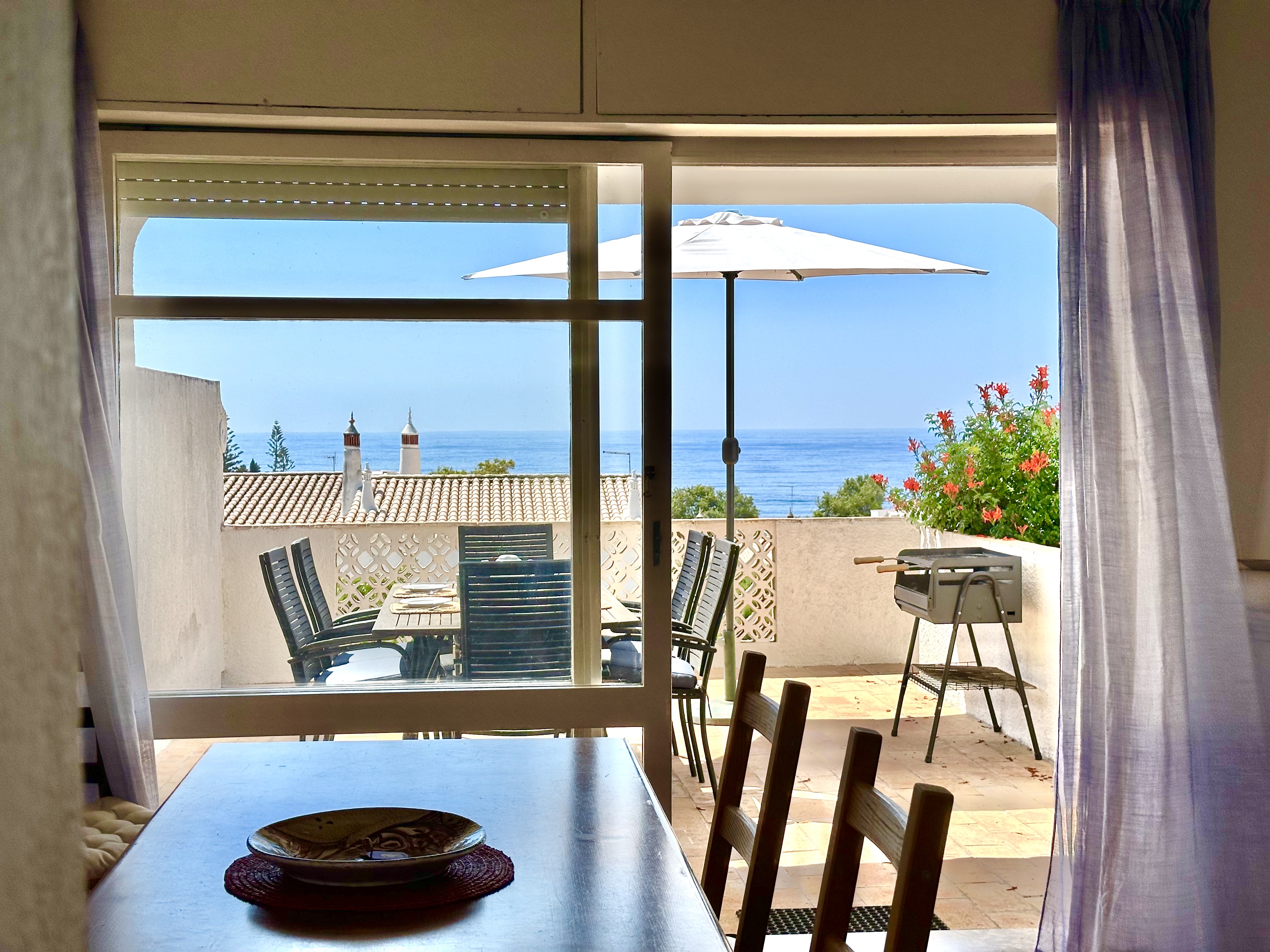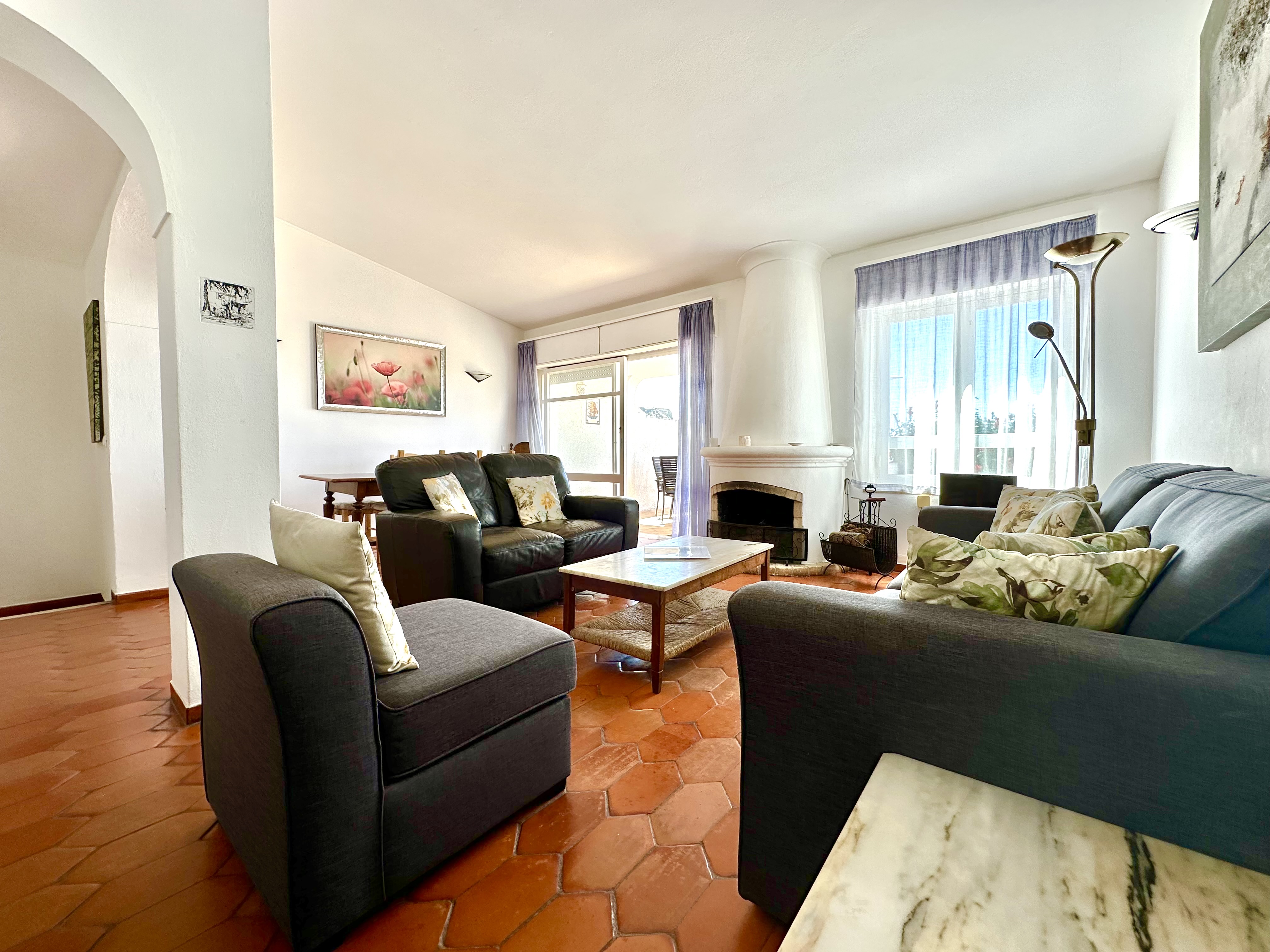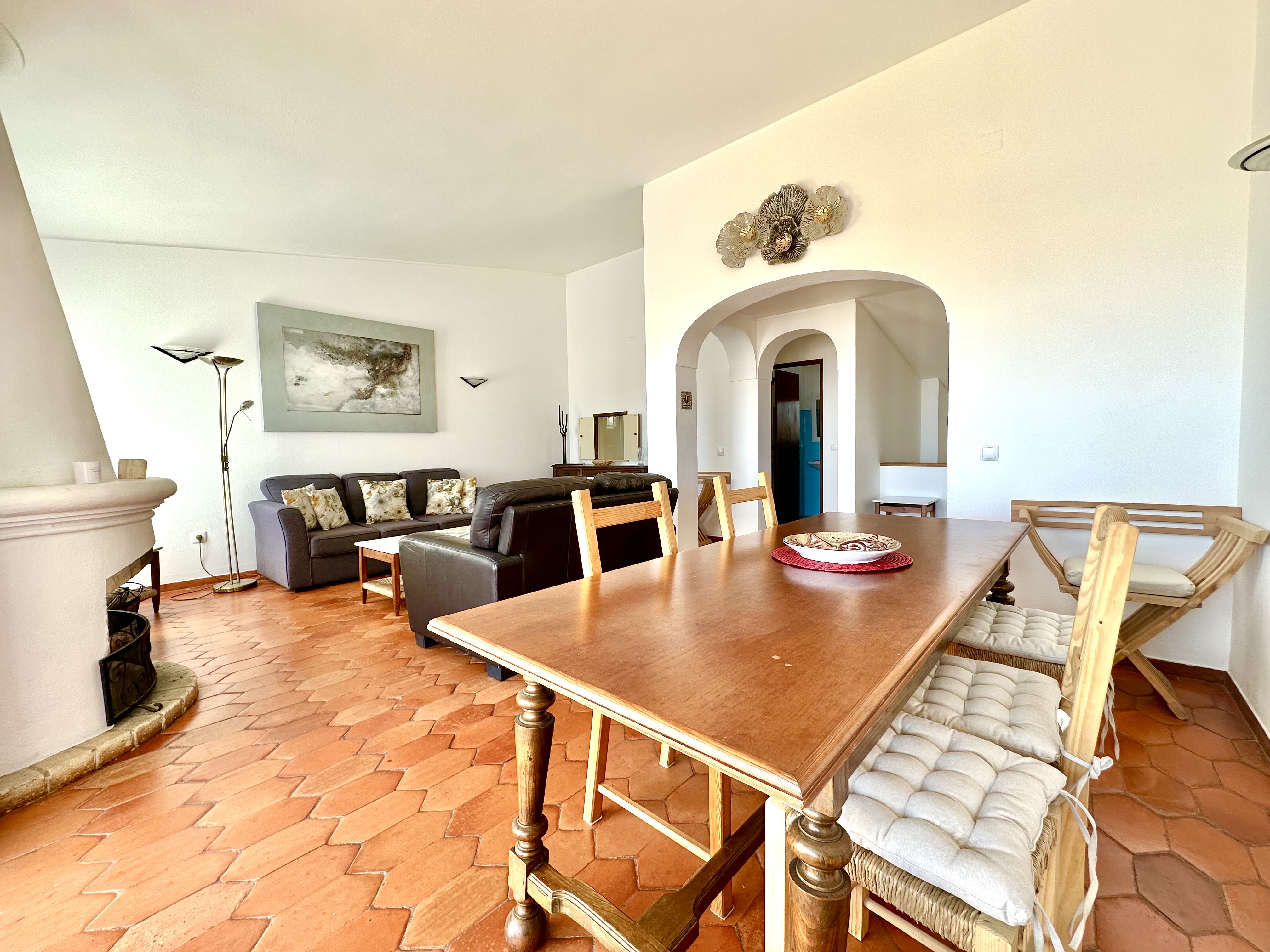 A sala de estar e de jantar é grande com Televisão por Cabo e Internet Fibra de Alta Velocidade. O salão abre para um grande terraço virado a sul com vista para o mar, e com mesa e cadeiras para refeições.