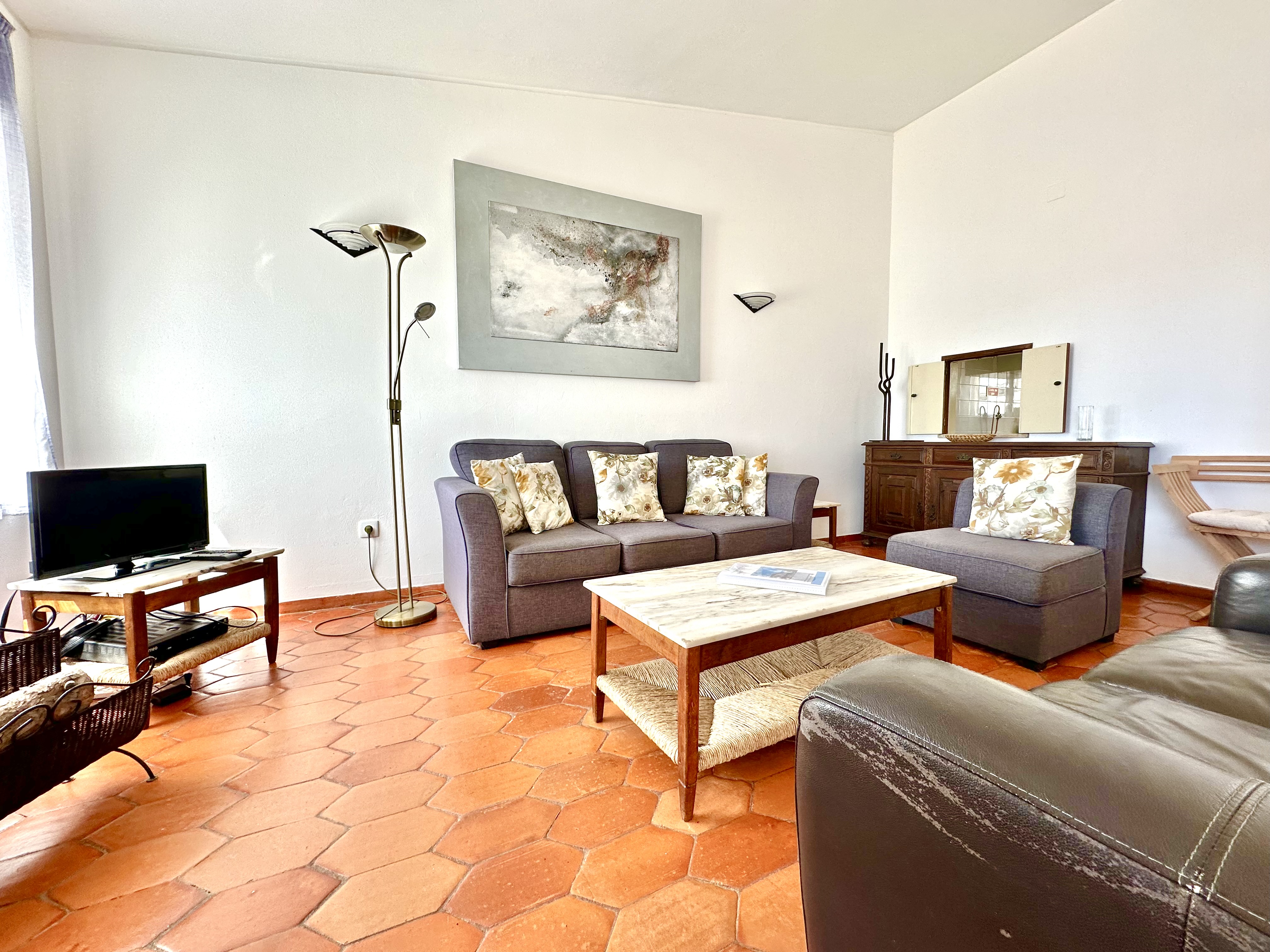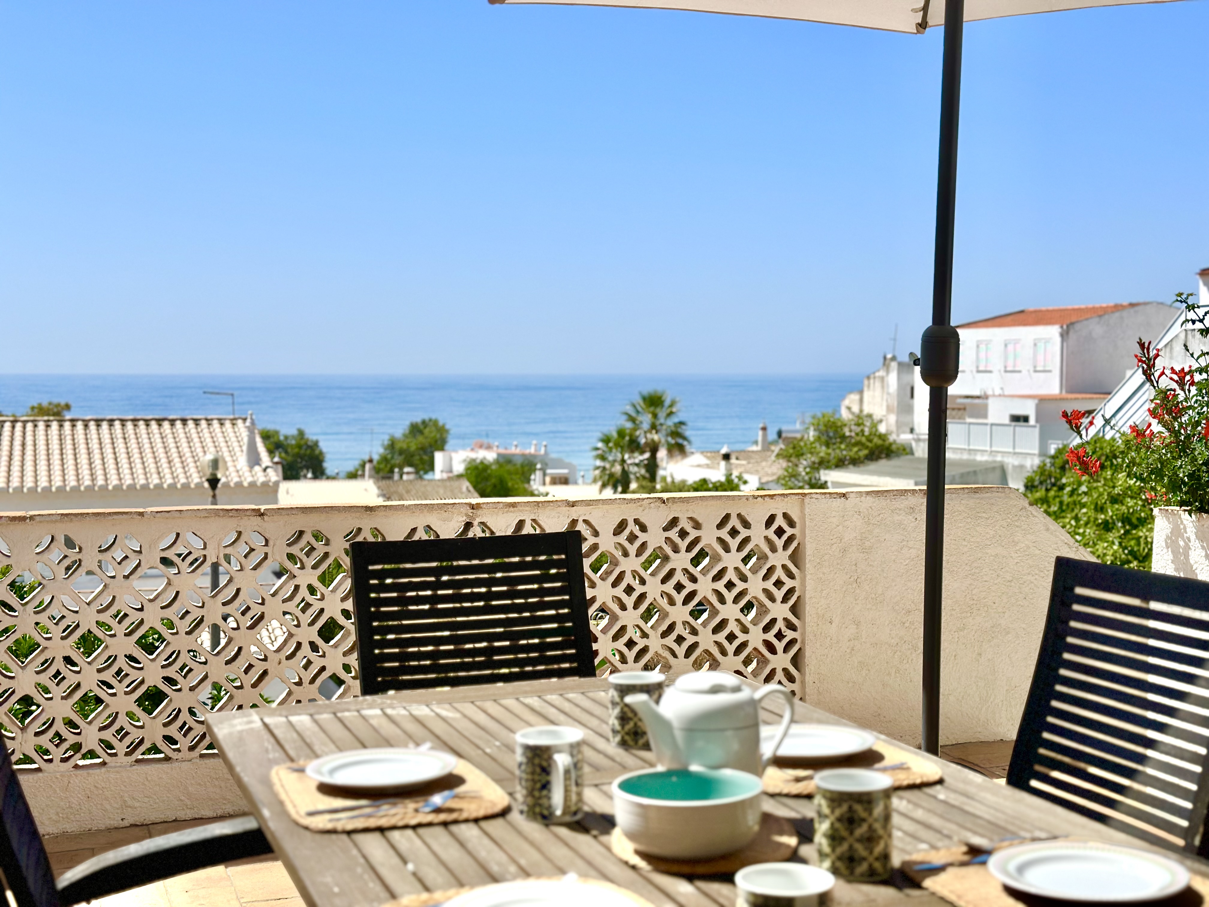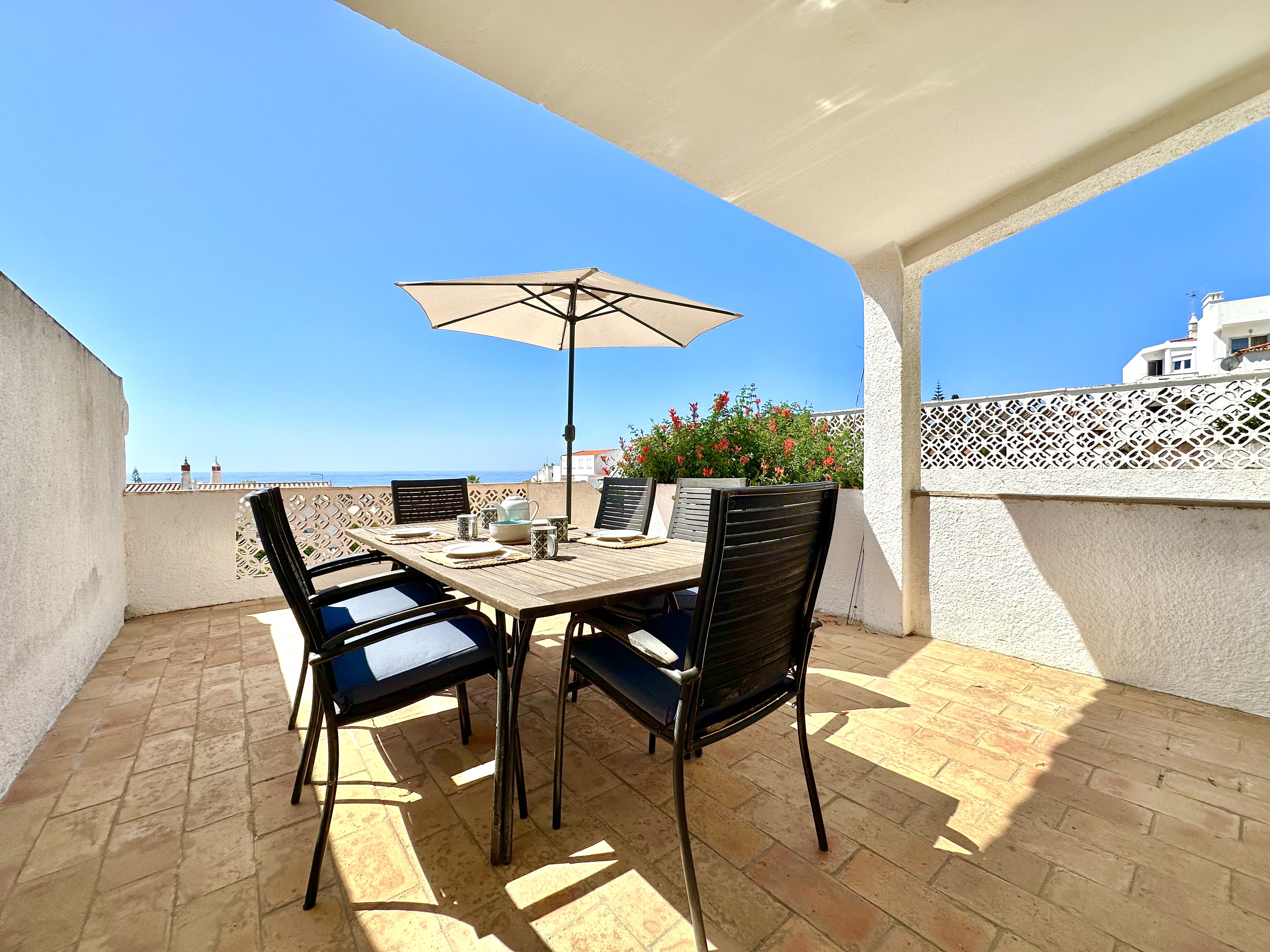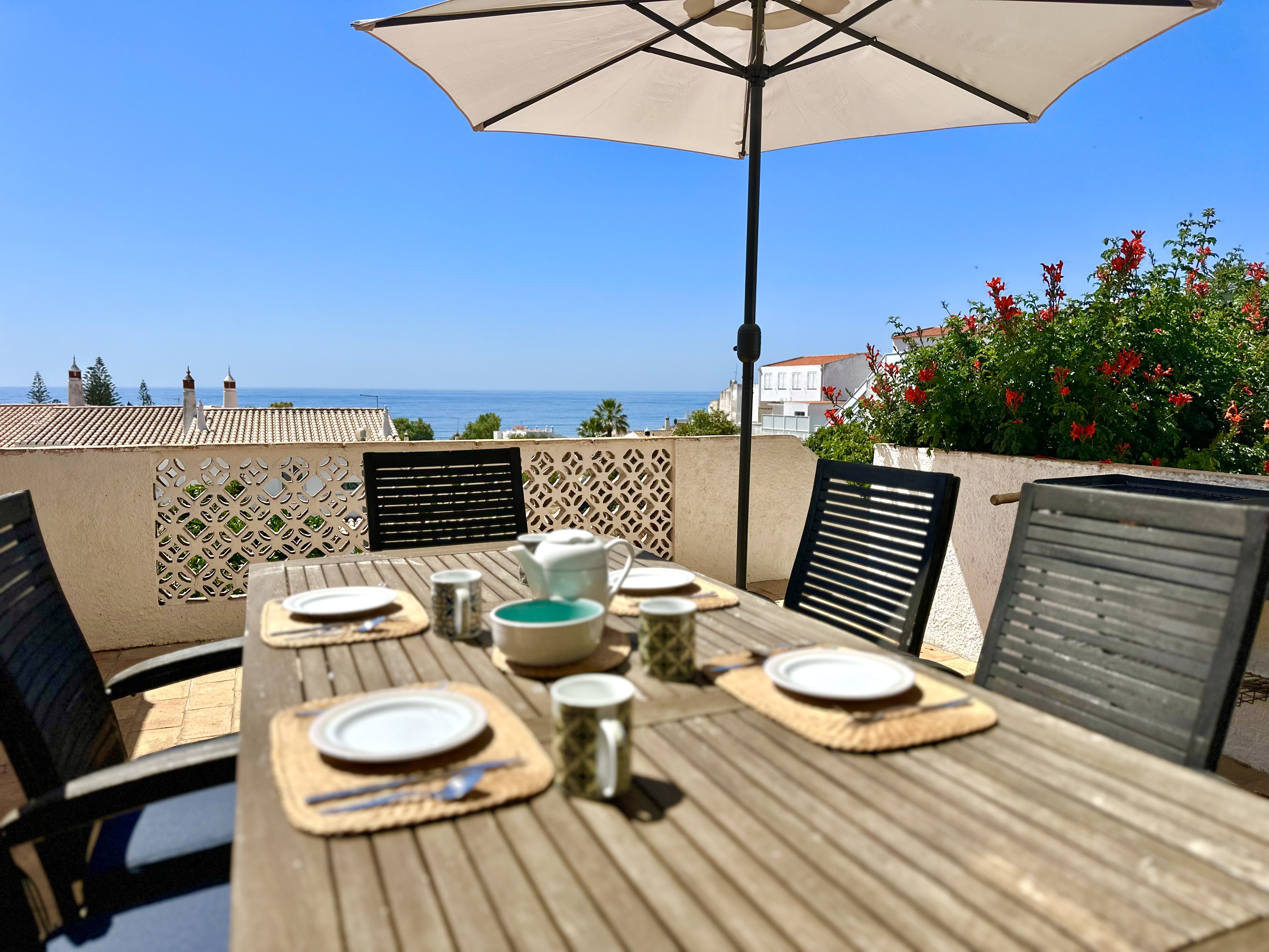 A sala de estar e de jantar é grande com Televisão por Cabo e Internet Fibra de Alta Velocidade. O salão abre para um grande terraço virado a sul com vista para o mar, e com mesa e cadeiras para refeições.
