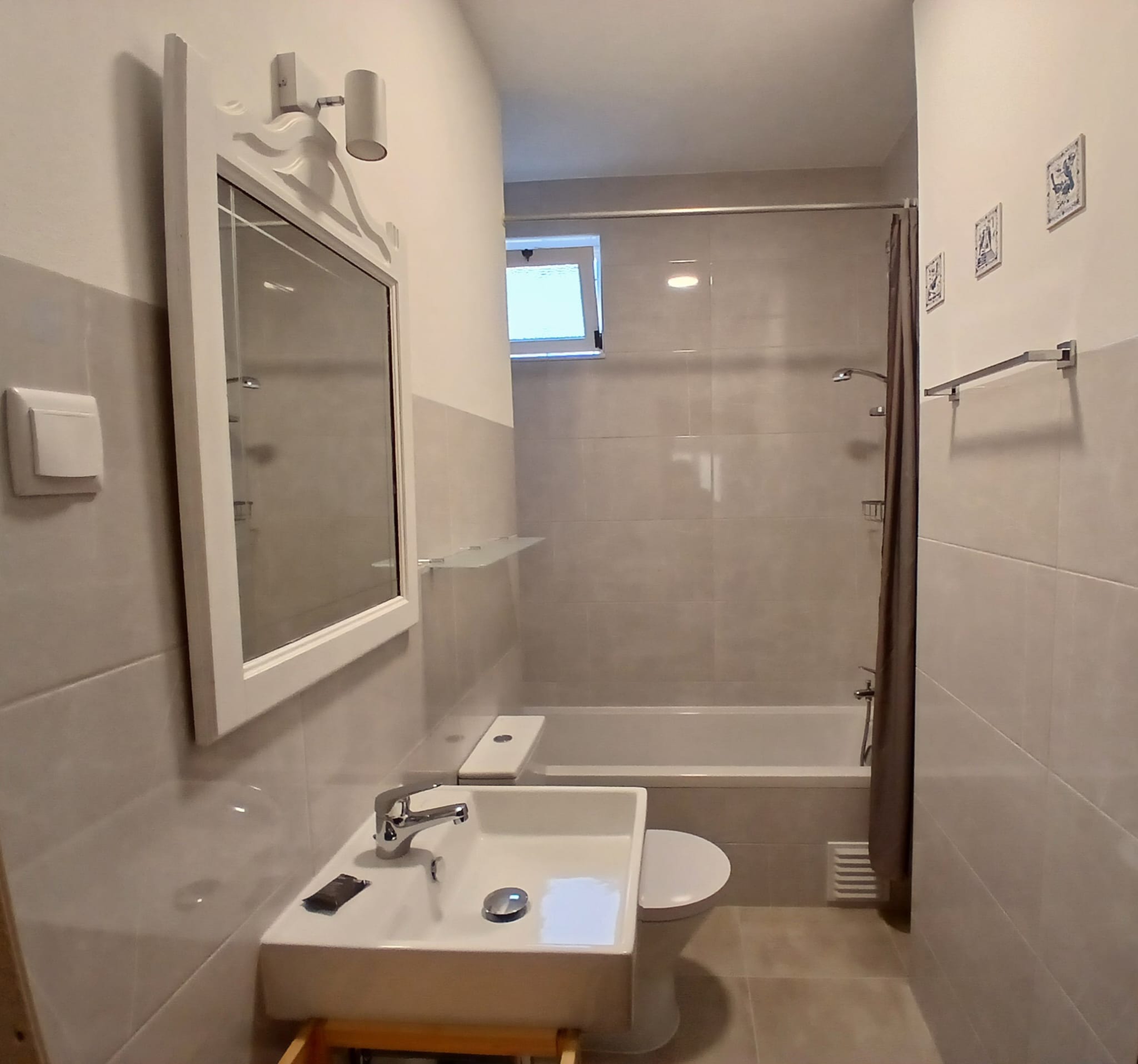 No primeiro andar, temos uma cozinha tradicional, incluindo, máquina de lavar loiça, chaleira, torradeira, fogão, frigorífico com congelador. Pequeno WC.